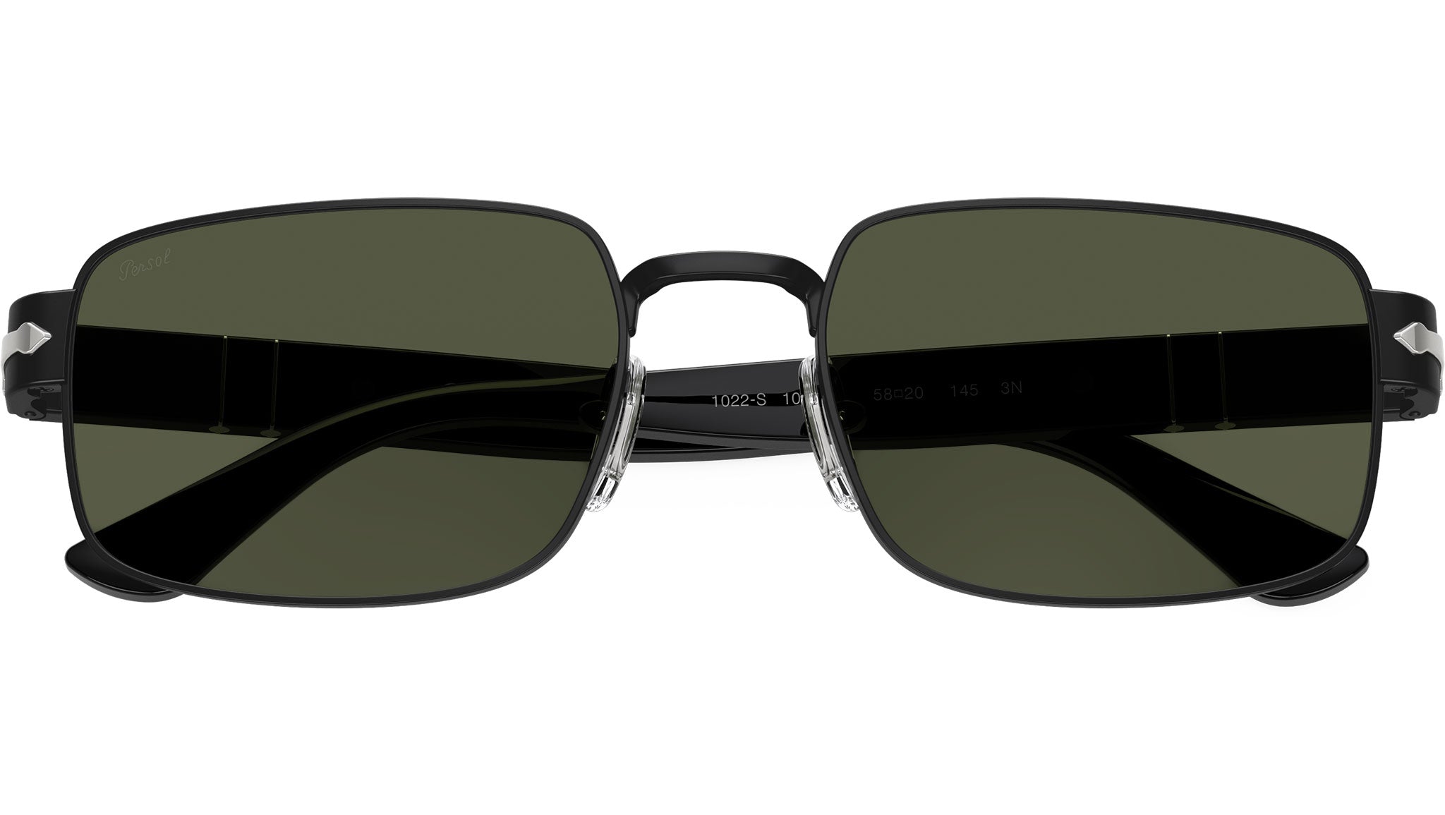 Occhiali da sole Persol unisex modello PO1022S 107831 con montatura d-frame in metallo nero e lenti in cristallo verde base 4.25. Naselli regolabili. Linea: Persol Lab. Codice Brand: 0PO1022S. Codice colore: 107831. Rivenditore autorizzato online Persol Eyewear. Ogni prodotto Persol viene consegnato con astuccio originale e accessori ed è coperto da garanzia del produttore di 12 mesi.