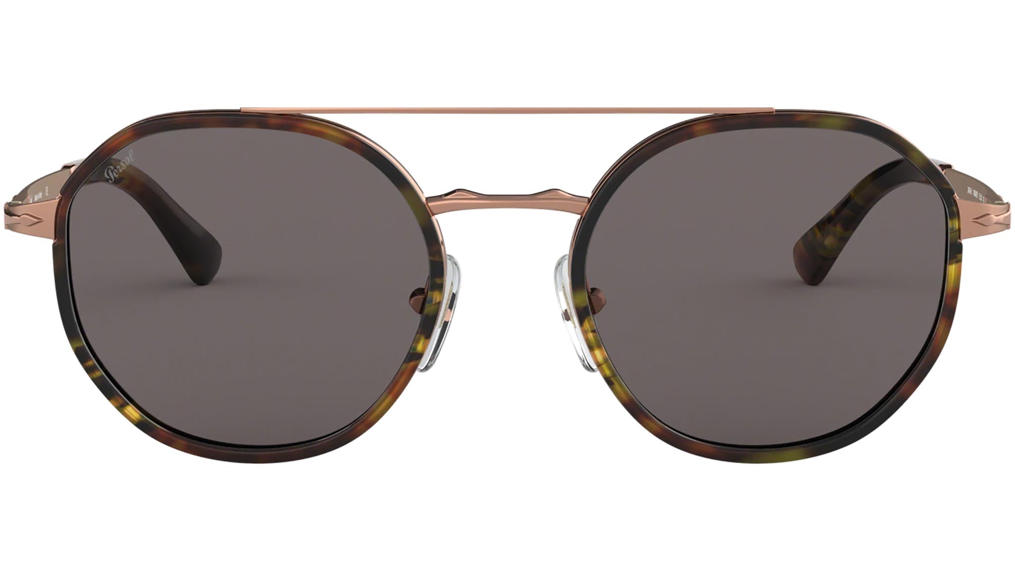 Occhiali da sole Persol modello PO2456S codice colore 1080R5 con montatura color rame full rim metallo e lenti in vetro color grigio.