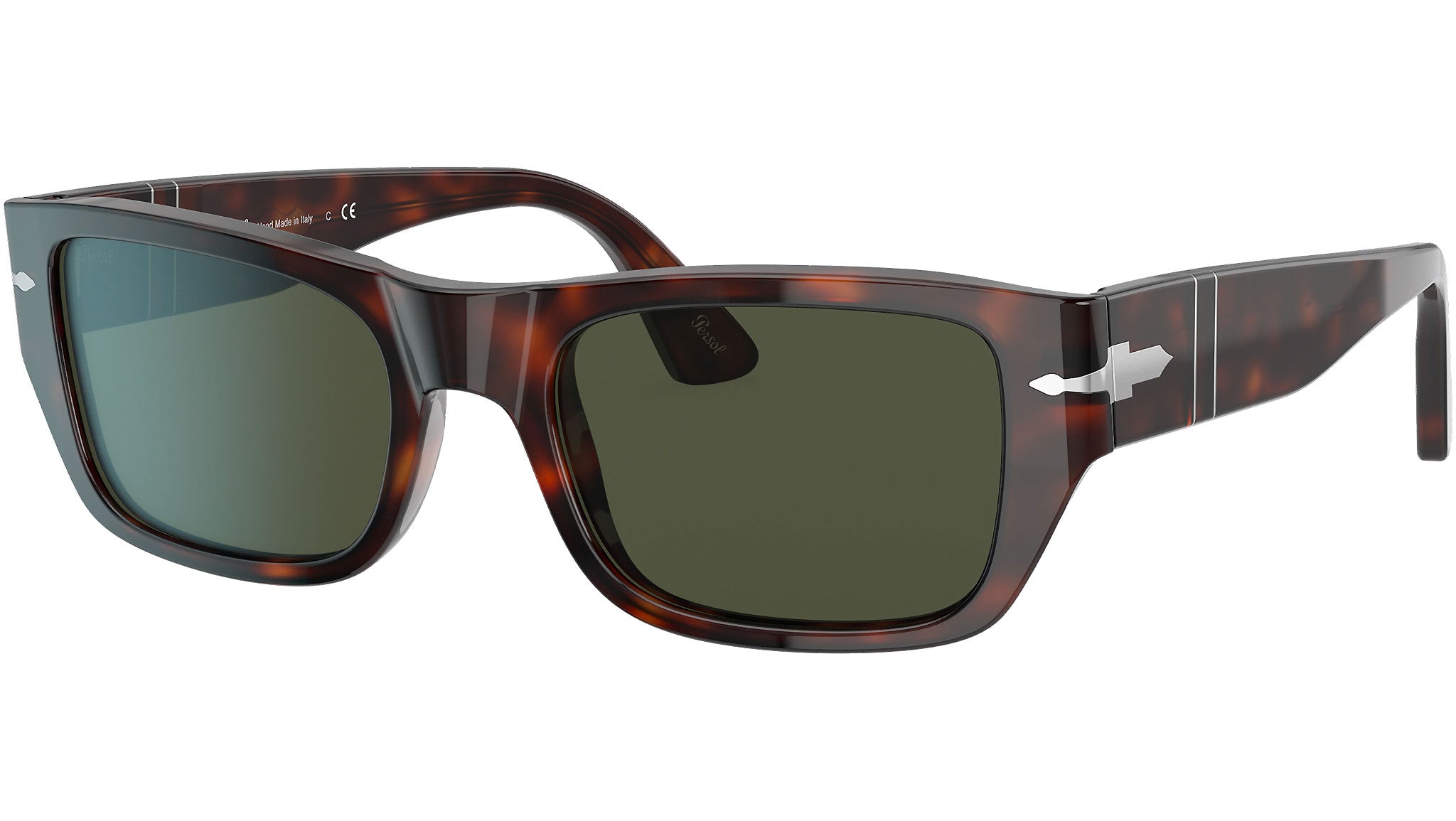 Occhiali da sole Persol modello PO3268S codice colore 24/31 con montatura color avana full rim acetato e lenti in CR-39 color verde.