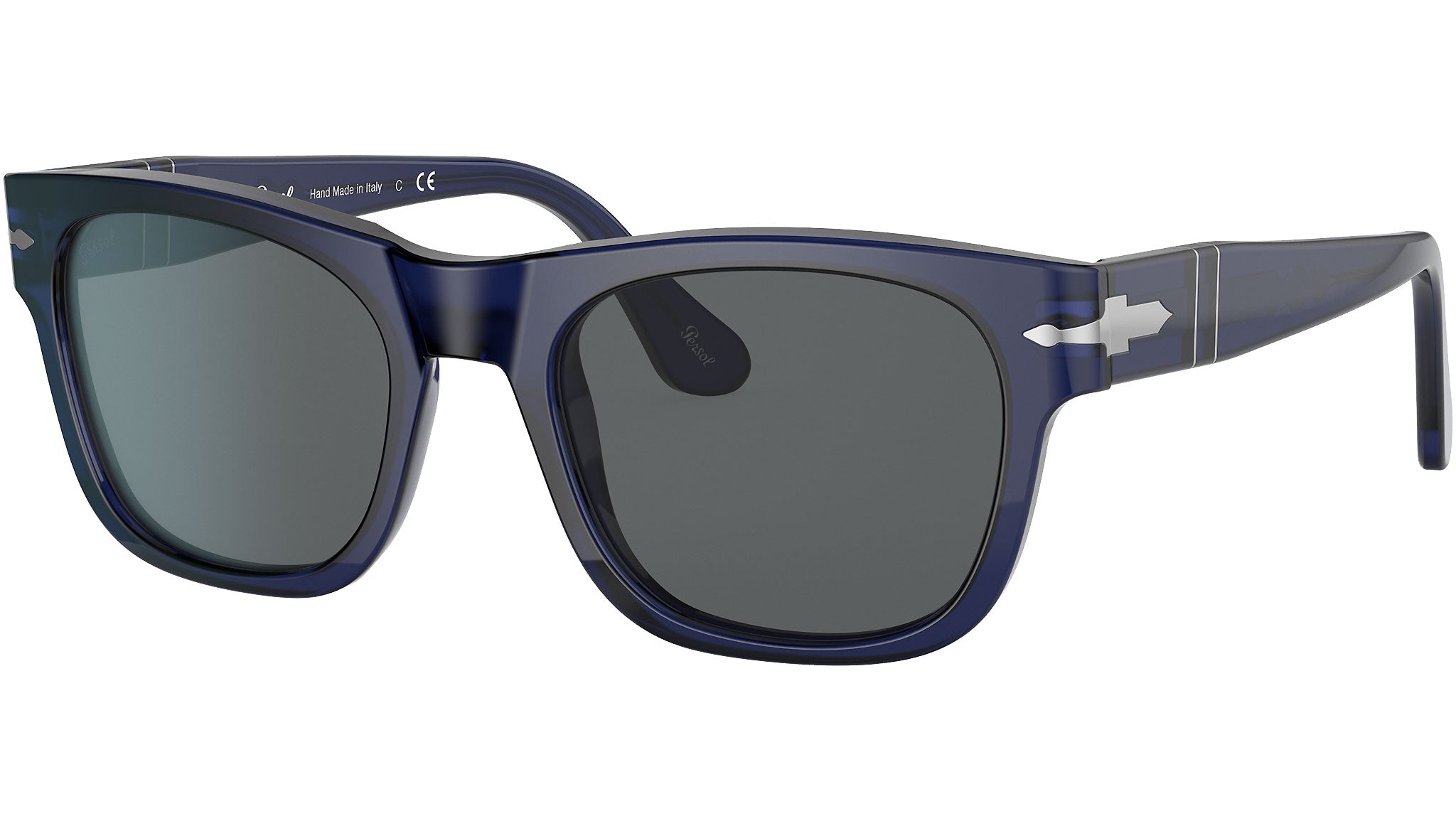 Occhiali da sole Persol modello PO3269S codice colore 181/B1 con montatura color cobalto full rim acetato e lenti in CR-39 color grigio.