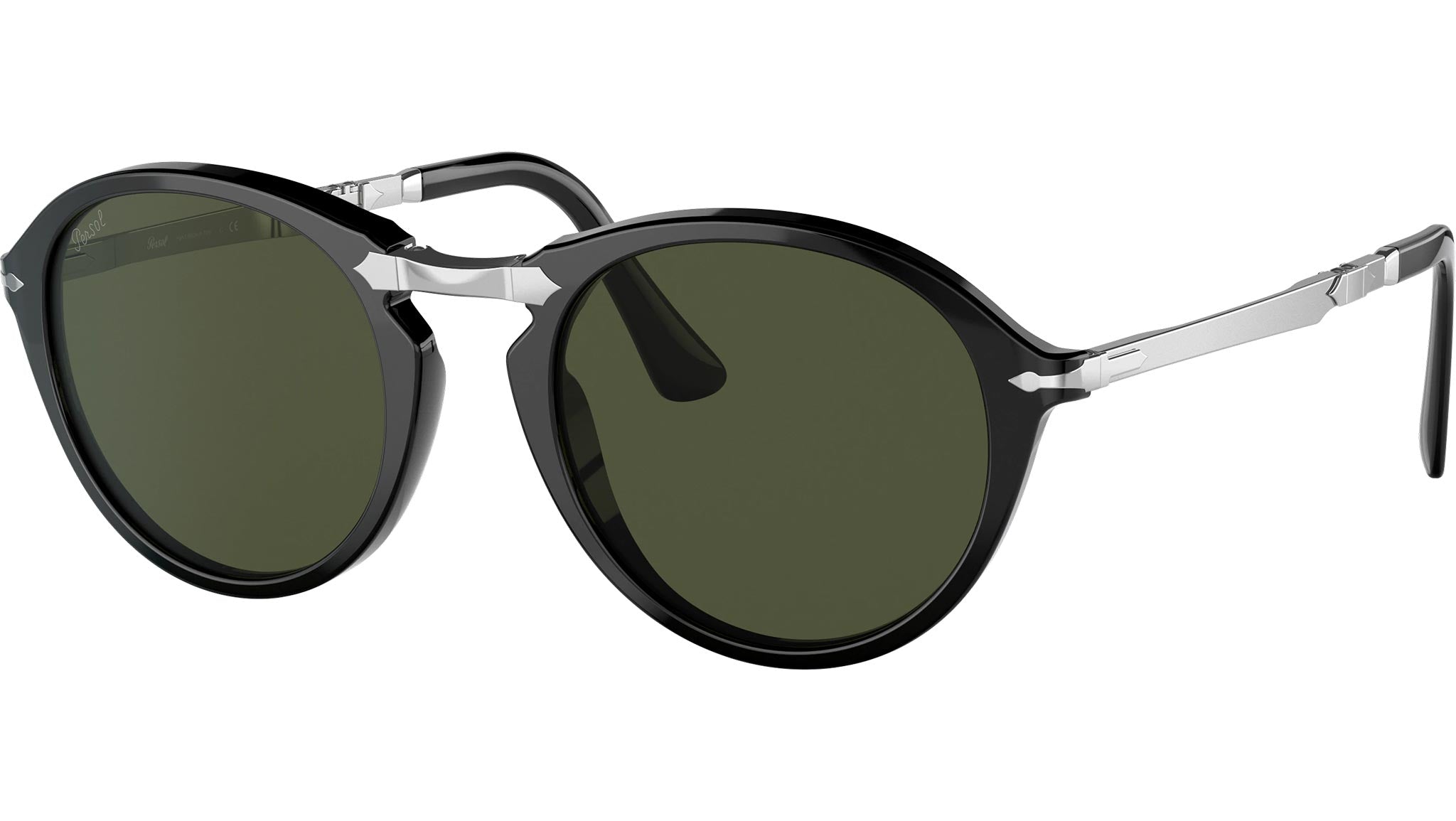 Occhiali da sole Persol modello PO3274S codice colore 95/31 con montatura color nero full rim acetato e lenti in vetro color verde.