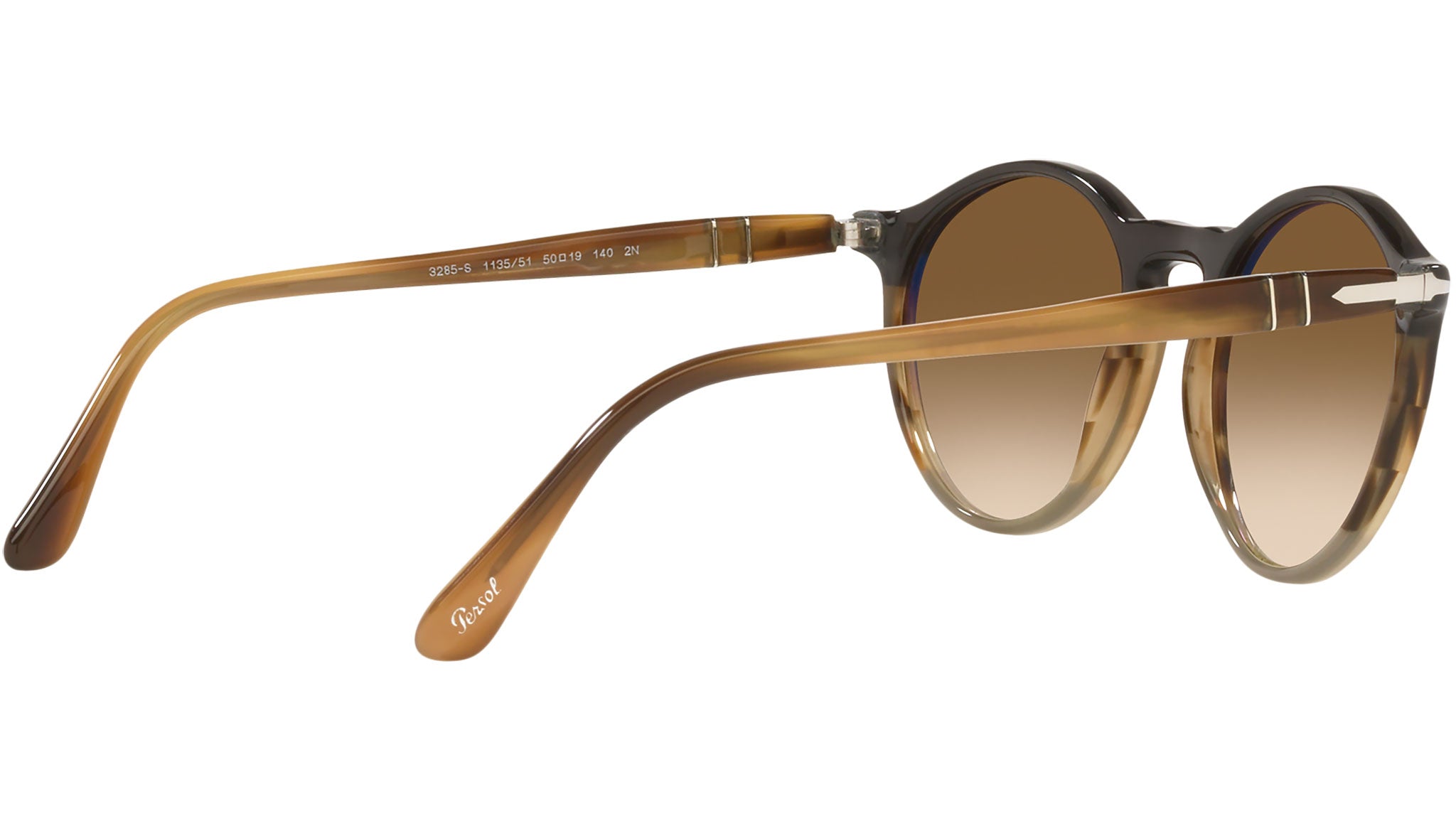 Occhiali da sole Persol modello PO3285S codice colore 113551 con montatura color nero / marrone striato / grigio full rim acetato e lenti in vetro color marrone.