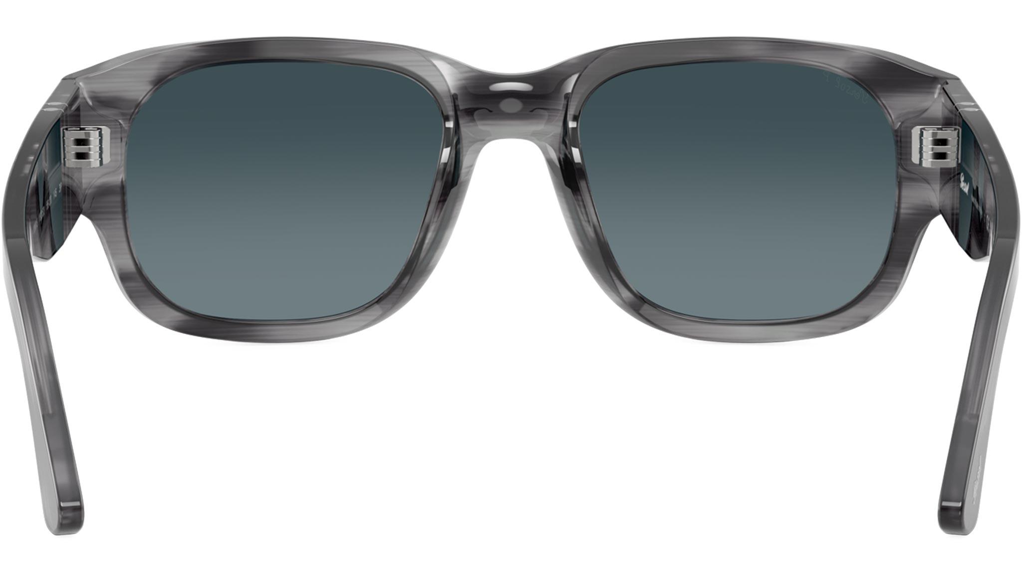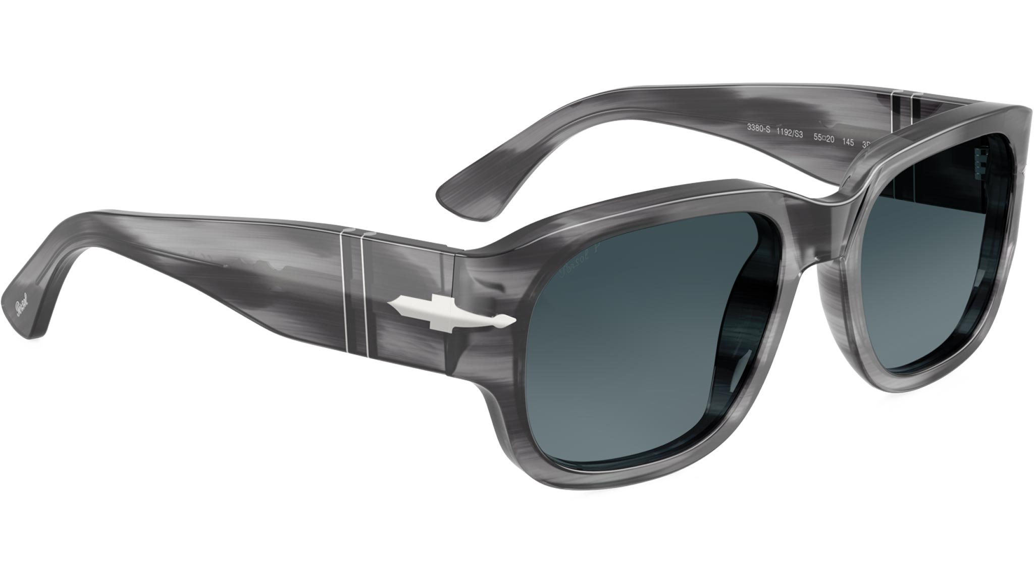 Occhiali da sole Persol unisex modello PO3380S 1192S3 con montatura squadrata in acetato grigio striato e lenti in cristallo blu chiaro sfumato blu scuro base 6. Vestibilità a ponte alto. Linea: Sartoria. Codice Brand: 0PO3380S. Codice colore: 1192S3. Rivenditore autorizzato online Persol Eyewear. Ogni prodotto Persol viene consegnato con astuccio originale e accessori ed è coperto da garanzia del produttore di 12 mesi.