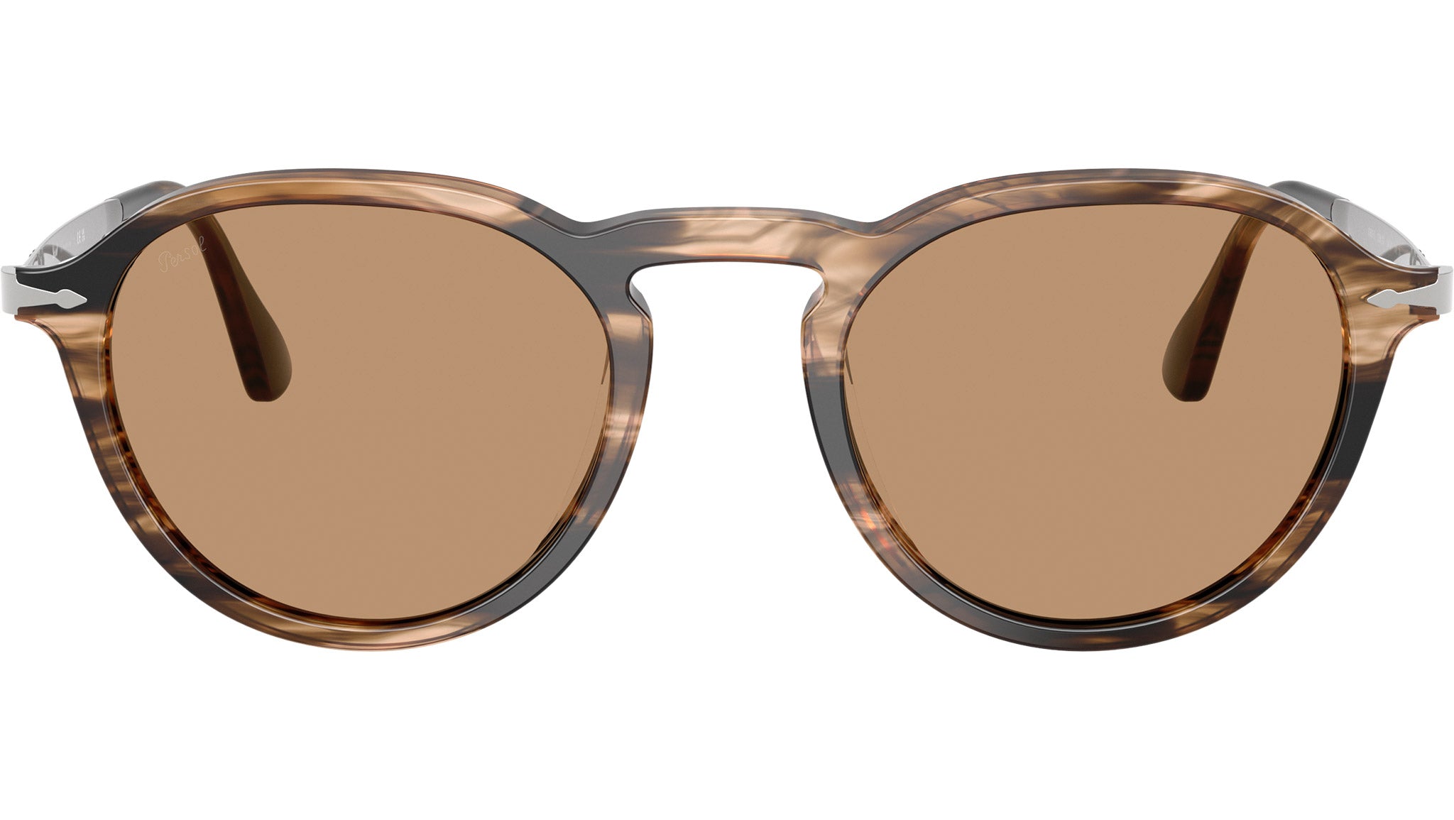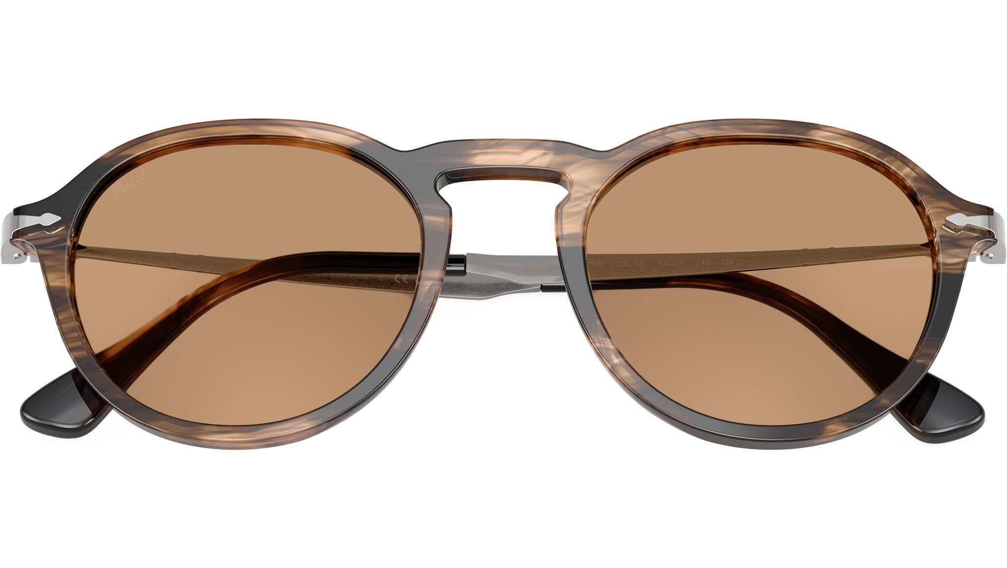 Occhiali da sole Persol unisex modello PO3383S 123653 con montatura panthos in acetato nero striato e marrone grigiastro e lenti in cristallo marrone base 4.25. Vestibilità a ponte alto. Linea: Galleria. Codice Brand: 0PO3383S. Codice colore: 123653. Rivenditore autorizzato online Persol Eyewear. Ogni prodotto Persol viene consegnato con astuccio originale e accessori ed è coperto da garanzia del produttore di 12 mesi.