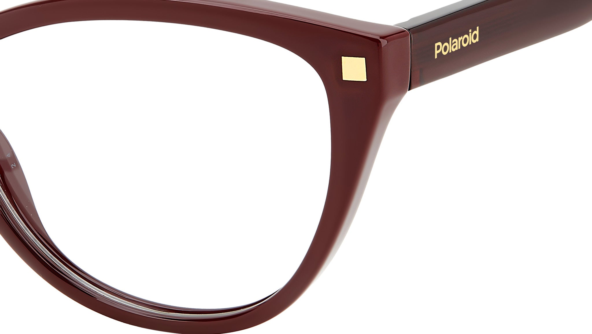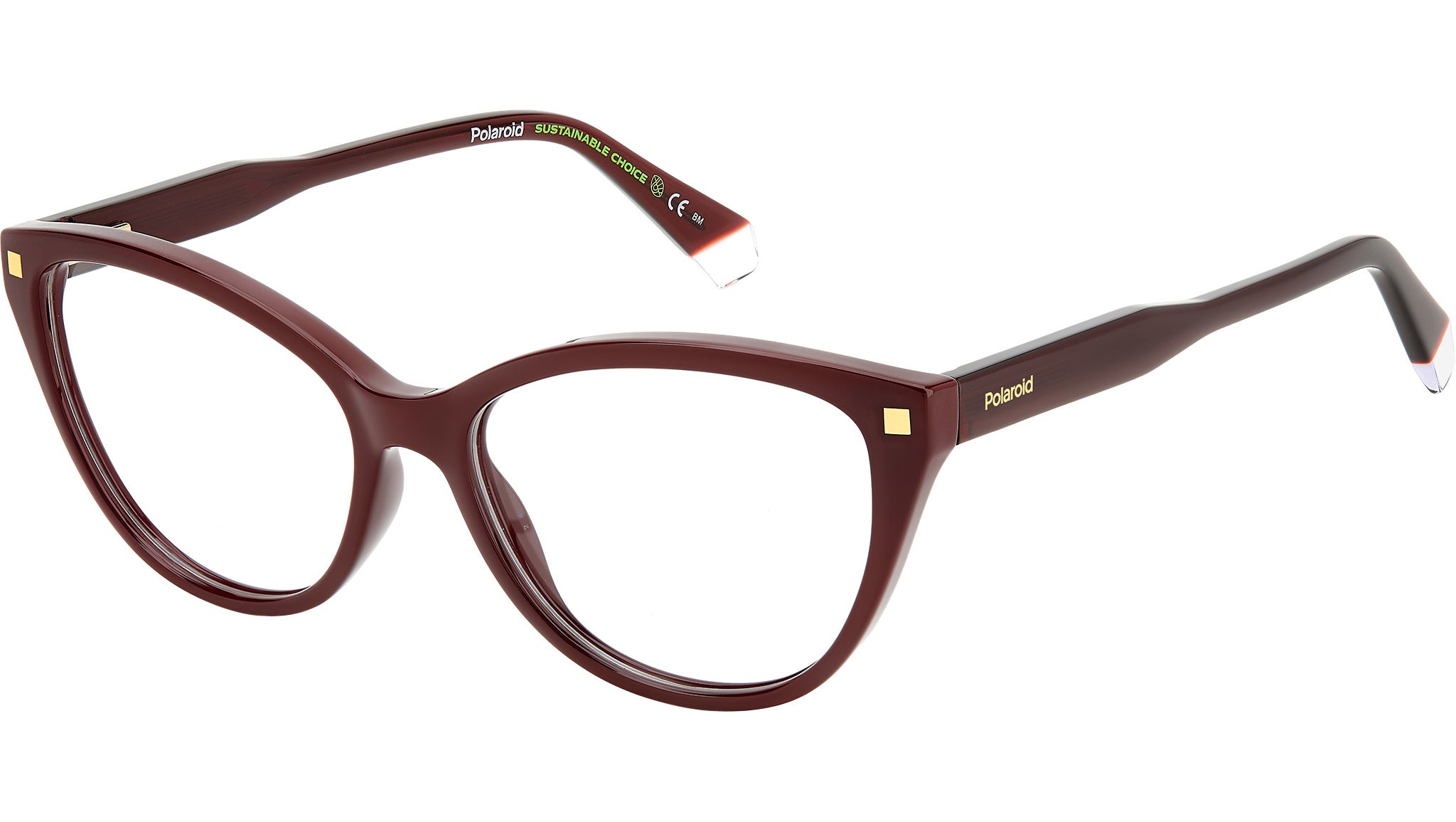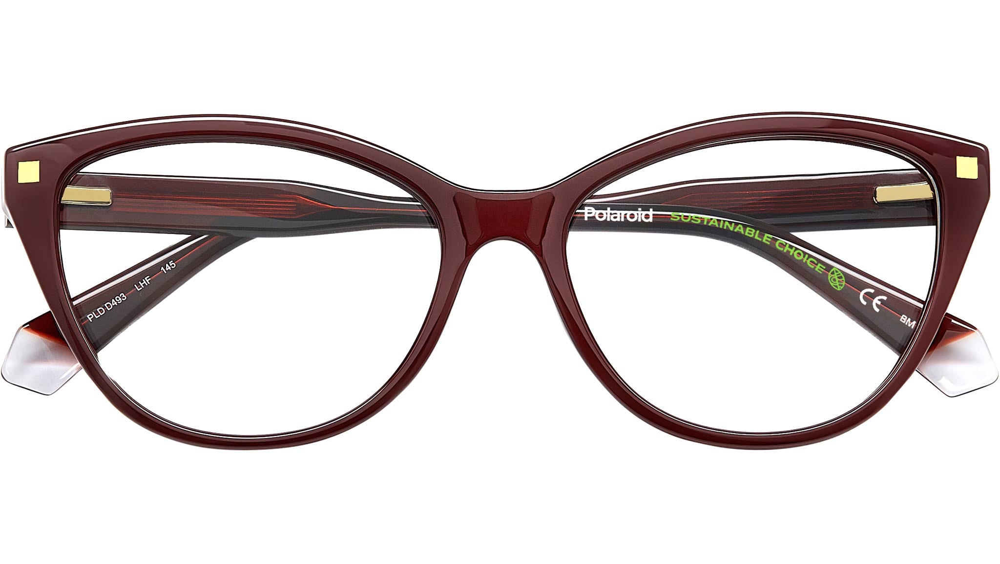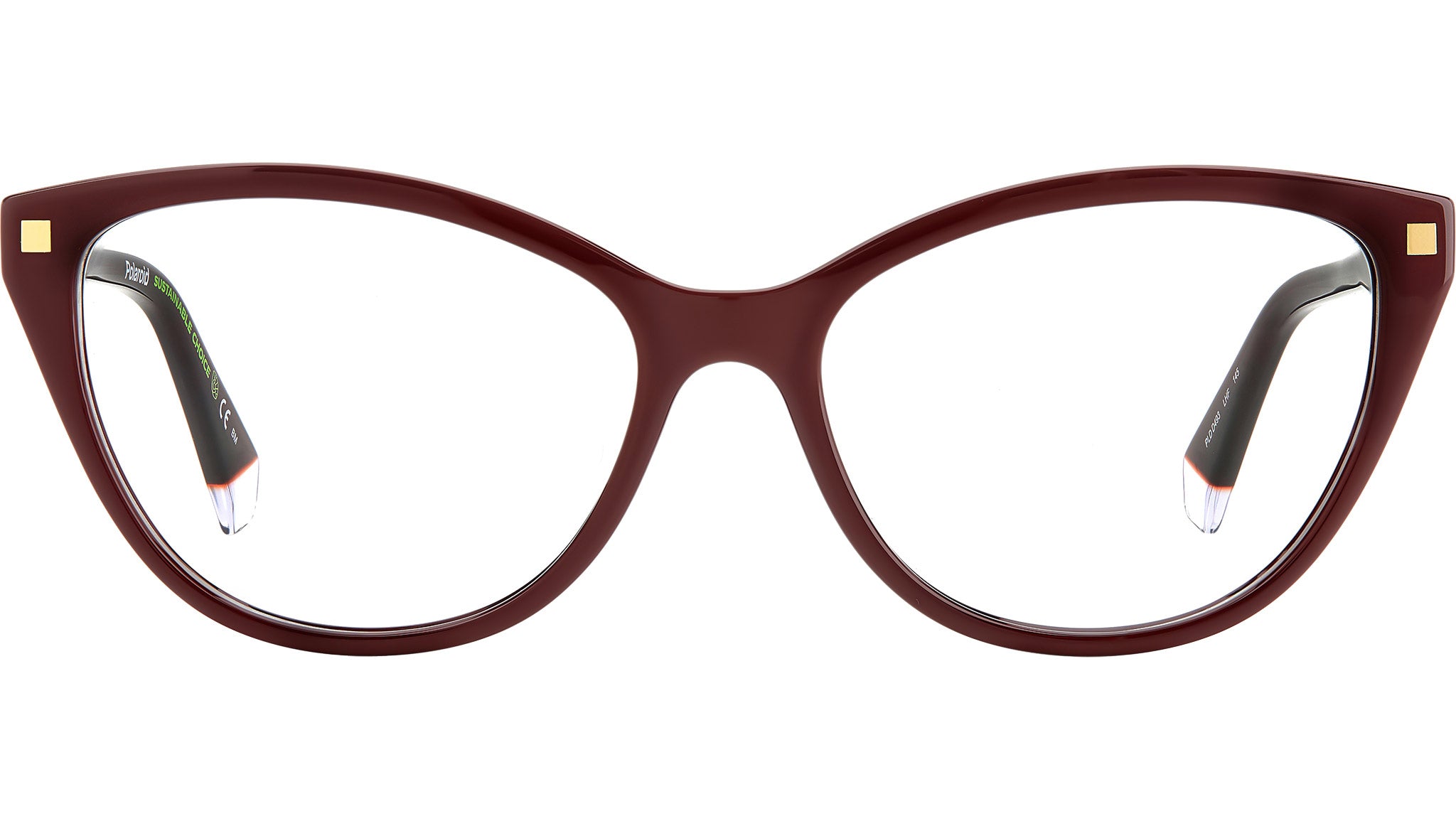 Occhiali da vista Polaroid PLD D493 LHF donna con montatura in bordeaux e lenti demo. Questo occhiale da vista Polaroid rappresenta la scelta sostenibile del marchio che realizza il frontale in acetato propionato e le aste in bio-acetato, materiale che deriva dalla cellulosa, in particolare dal cotone e dalla polpa del legno. Immancabili in questo occhiale da donna sono i rivetti quadrati in metallo del frontale cat-eye e le punte con colore a contrasto dei terminali, dettagli che contraddistinguono la collezione. Linea: Essential. Codice modello: 106892. Codice colore: LHF. Rivenditore autorizzato Polaroid online. Gli occhiali vengono consegnati con custodia e accessori originali e sono coperti dalla garanzia ufficiale di 12 mesi del produttore.