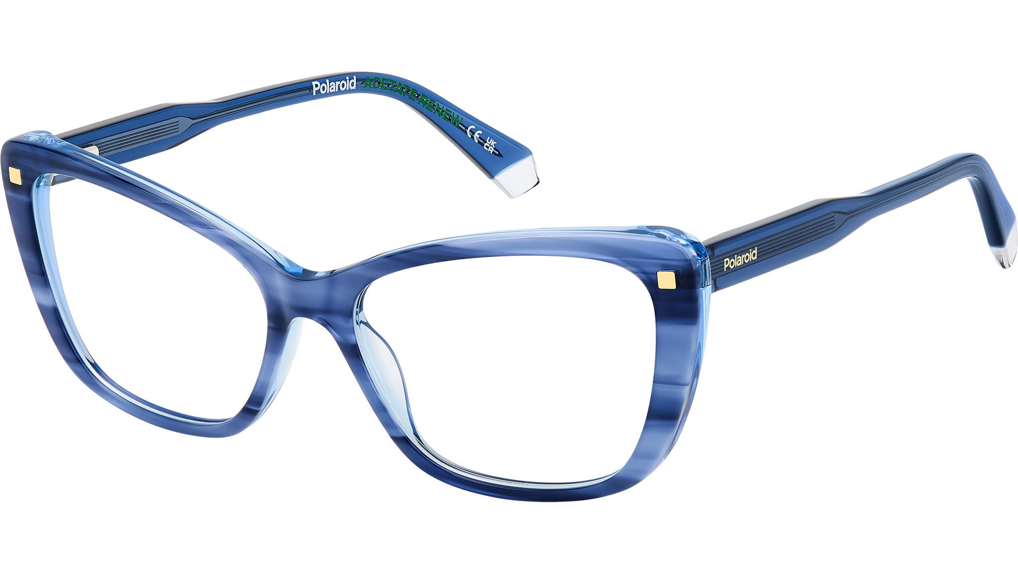 Occhiali da vista Polaroid PLD D542 AVS donna con montatura in blu striato e lenti demo. Difficile resistere al fascino minimal-chic di questi occhiali da vista Polaroid per donna. Sono in eco-acetato, con forma cat-eye vagamente allungata e deliziosi rivetti a completare il frontale. Indossarli è un piacere grazie al comfort delle cerniere flessibili. Il logo Polaroid firma la montatura, irresistibile nella versione con frontale striato, sorprendente nella variante con anima a vista. Linea: Essential. Codice modello: 108826. Codice colore: AVS. Rivenditore autorizzato Polaroid online. Gli occhiali vengono consegnati con custodia e accessori originali e sono coperti dalla garanzia ufficiale di 12 mesi del produttore.