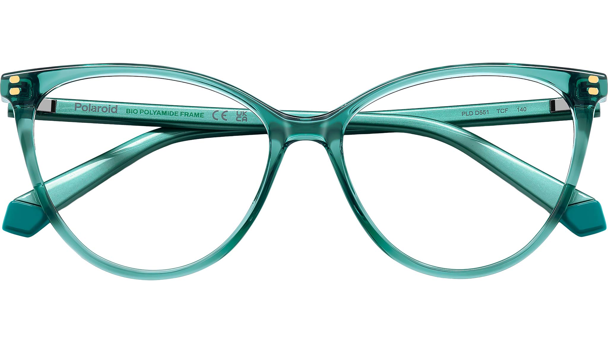 Occhiali da vista Polaroid PLD D551 TCF donna con montatura in turchese e lenti demo. Gli occhiali da vista Polaroid di forma cat-eye si fanno notare per la loro personalità contemporanea. Le linee sottili e i volumi ridotti li rendono una scelta sicura: comoda ogni giorno e impeccabile in ogni occasione. La montatura è in eco-poliammide, scelta consapevole firmata dal logo Polaroid. Le opzioni colore tra cui scegliere sono una più irresistibile dell’altra. Linea: Cool. Codice modello: 109334. Codice colore: TCF. Rivenditore autorizzato Polaroid online. Gli occhiali vengono consegnati con custodia e accessori originali e sono coperti dalla garanzia ufficiale di 12 mesi del produttore.
