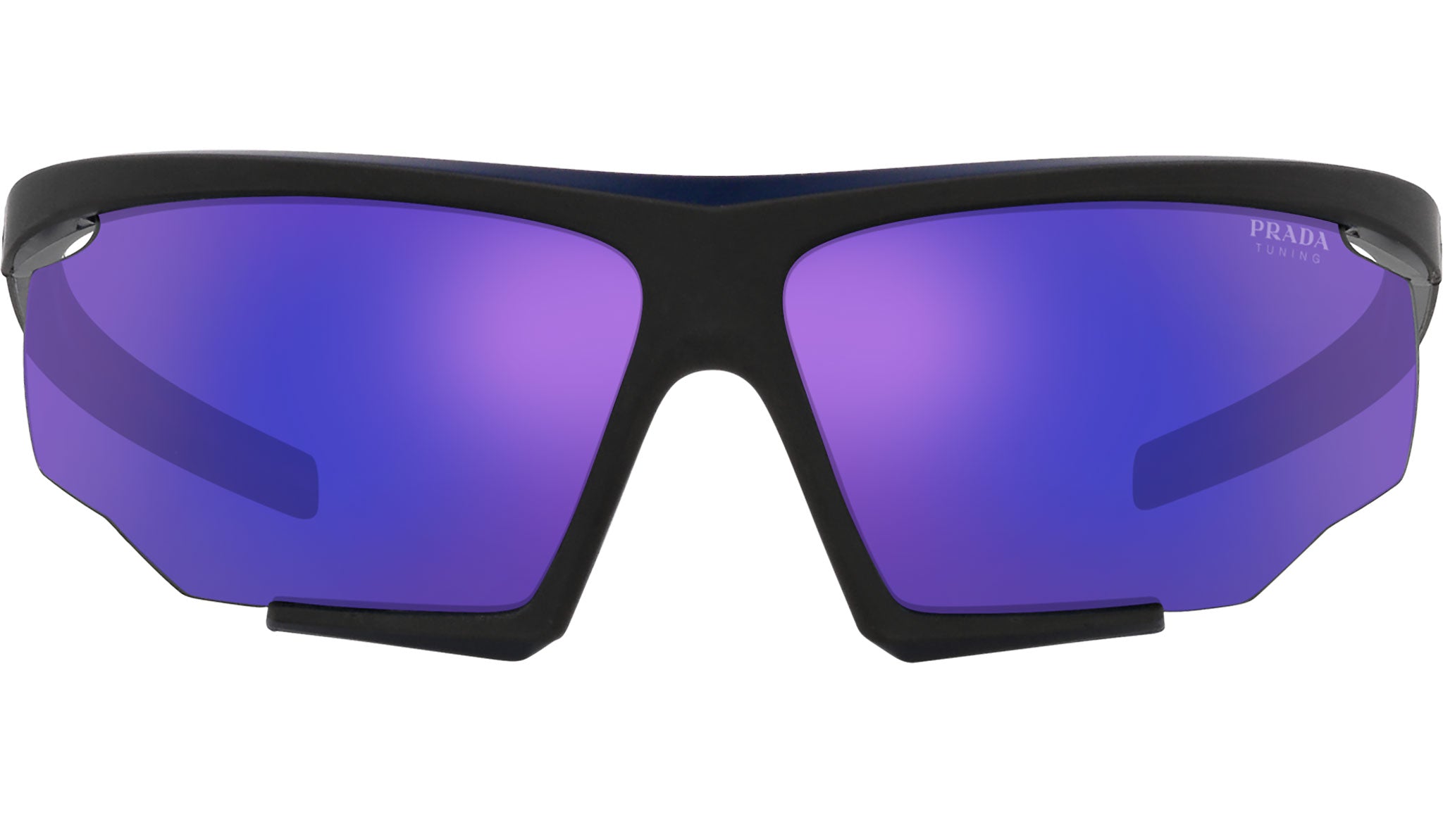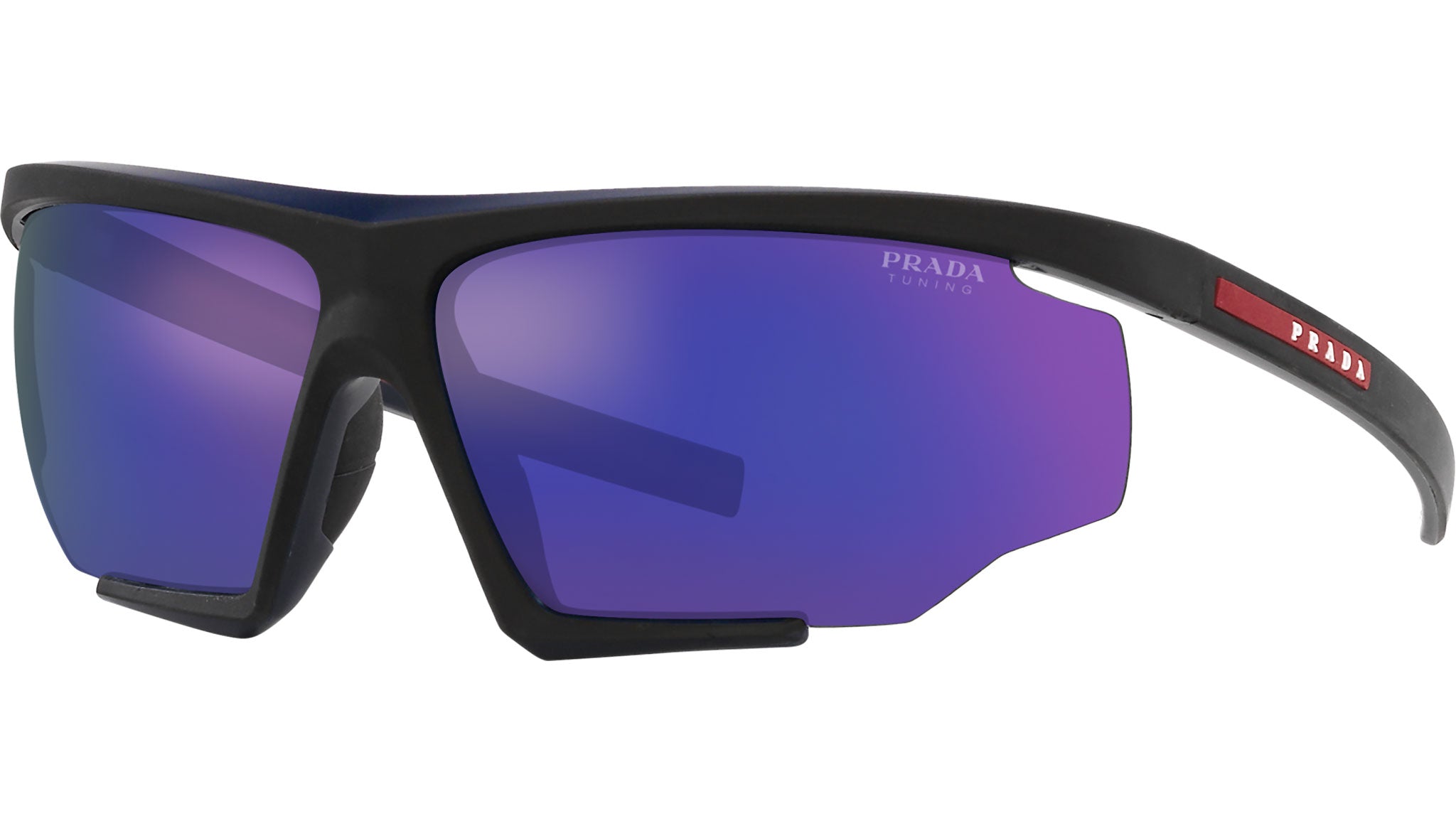 Occhiali da sole Prada Linea Rossa modello PS 07YS codice colore 13K05U con montatura d-frame semi rim in iniettato color nero / rosso gommato e lenti in policarbonato color a specchio blu. Rivenditore autorizzato Prada. Ogni prodotto Prada Linea Rossa viene consegnato con astuccio originale e accessori.