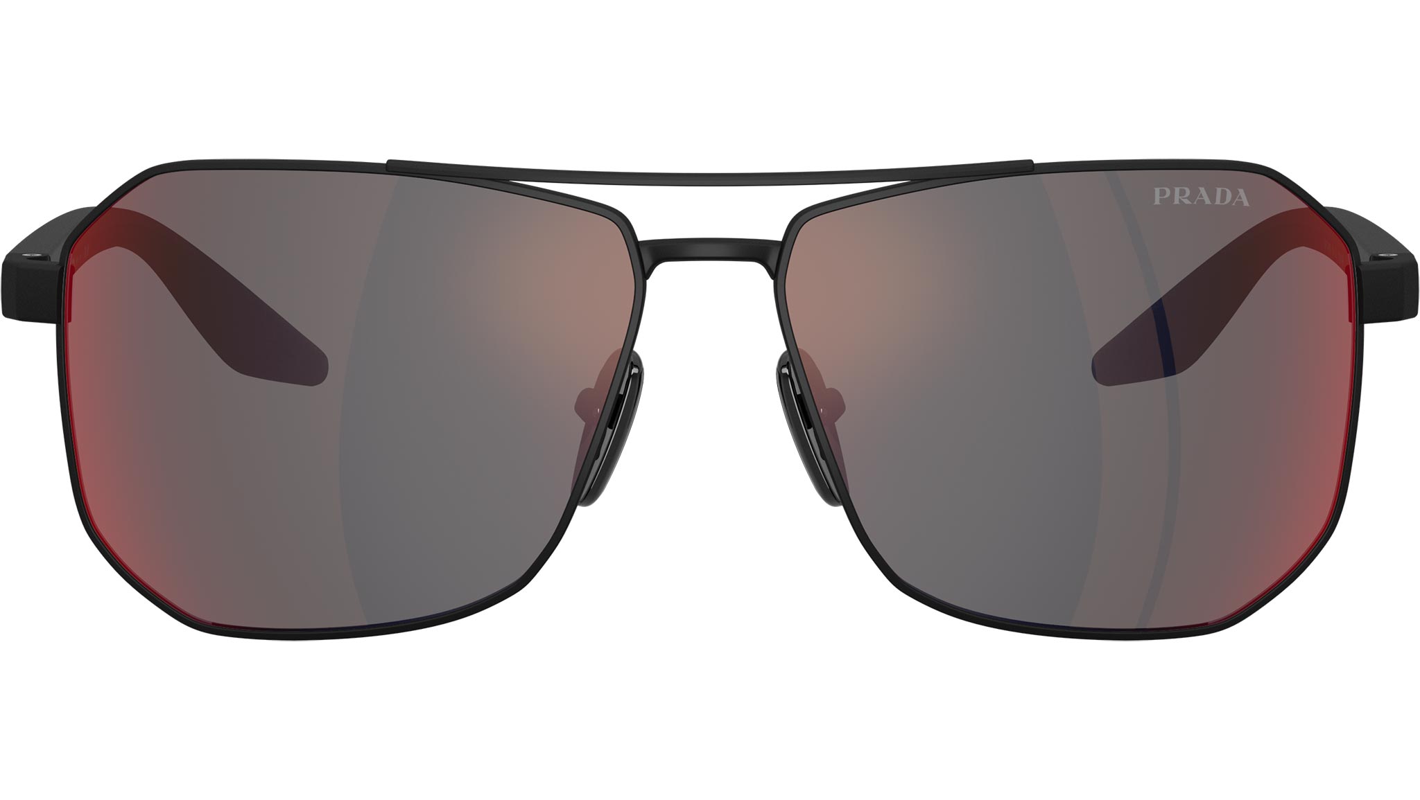Occhiali da sole Prada Linea Rossa PS A53S DG008F uomo con montatura aviatore in metallo gomma nero e lenti in policarbonato color grigio scuro a specchio blu/rosso. Vestibilità a ponte alto. Linea: Lifestyle. Codice modello: PSA53S. Codice colore: DG008F. Made in Italy. Rivenditore autorizzato Prada Sport online. Gli occhiali vengono consegnati con custodia e accessori originali e sono coperti dalla garanzia ufficiale di 12 mesi del produttore.