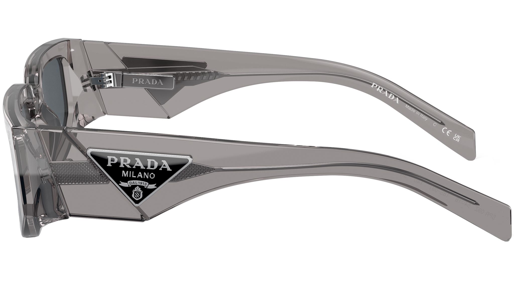 Occhiali da sole Prada uomo modello 09ZS con montatura asfalto trasparente full rim in acetato e lenti grigio scuro base 2. Fit a ponte alto. Linea: Catwalk. Brand code: PR09ZS. Codice colore: 18S09T. Rivenditore autorizzato Prada. Ogni prodotto Prada viene consegnato con astuccio originale e accessori ed è coperto da garanzia del produttore di 12 mesi.