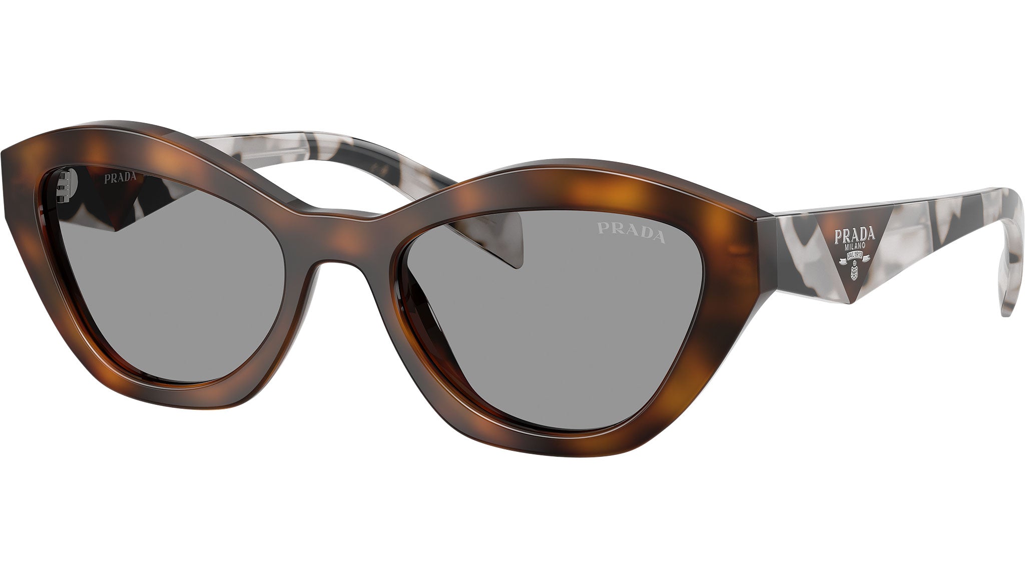 Occhiali da sole Prada PR A02S 20D50Q donna con montatura butterfly in acetato tartaruga ginepro e lenti in bio poliammide color grigio. Vestibilità a ponte alto. Linea: Catwalk. Codice modello: PRA02S. Codice colore: 20D50Q. Made in Italy. Rivenditore autorizzato Prada online. Gli occhiali vengono consegnati con custodia e accessori originali e sono coperti dalla garanzia ufficiale di 12 mesi del produttore.