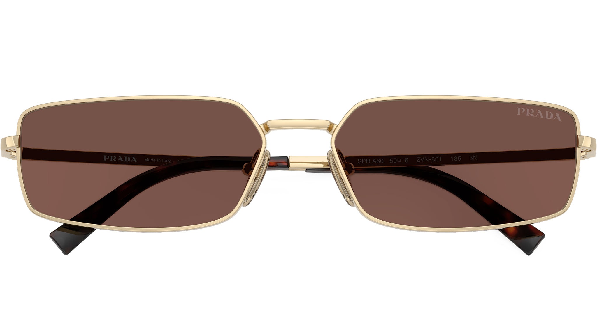 Occhiali da sole Prada PR A60S ZVN80T donna con montatura rettangolare in acciaio oro chiaro e lenti in bio poliammide color cioccolato scuro. Naselli regolabili. Linea: Signature. Codice modello: PRA60S. Codice colore: ZVN80T. Made in Italy. Rivenditore autorizzato Prada online. Gli occhiali vengono consegnati con custodia e accessori originali e sono coperti dalla garanzia ufficiale di 12 mesi del produttore.