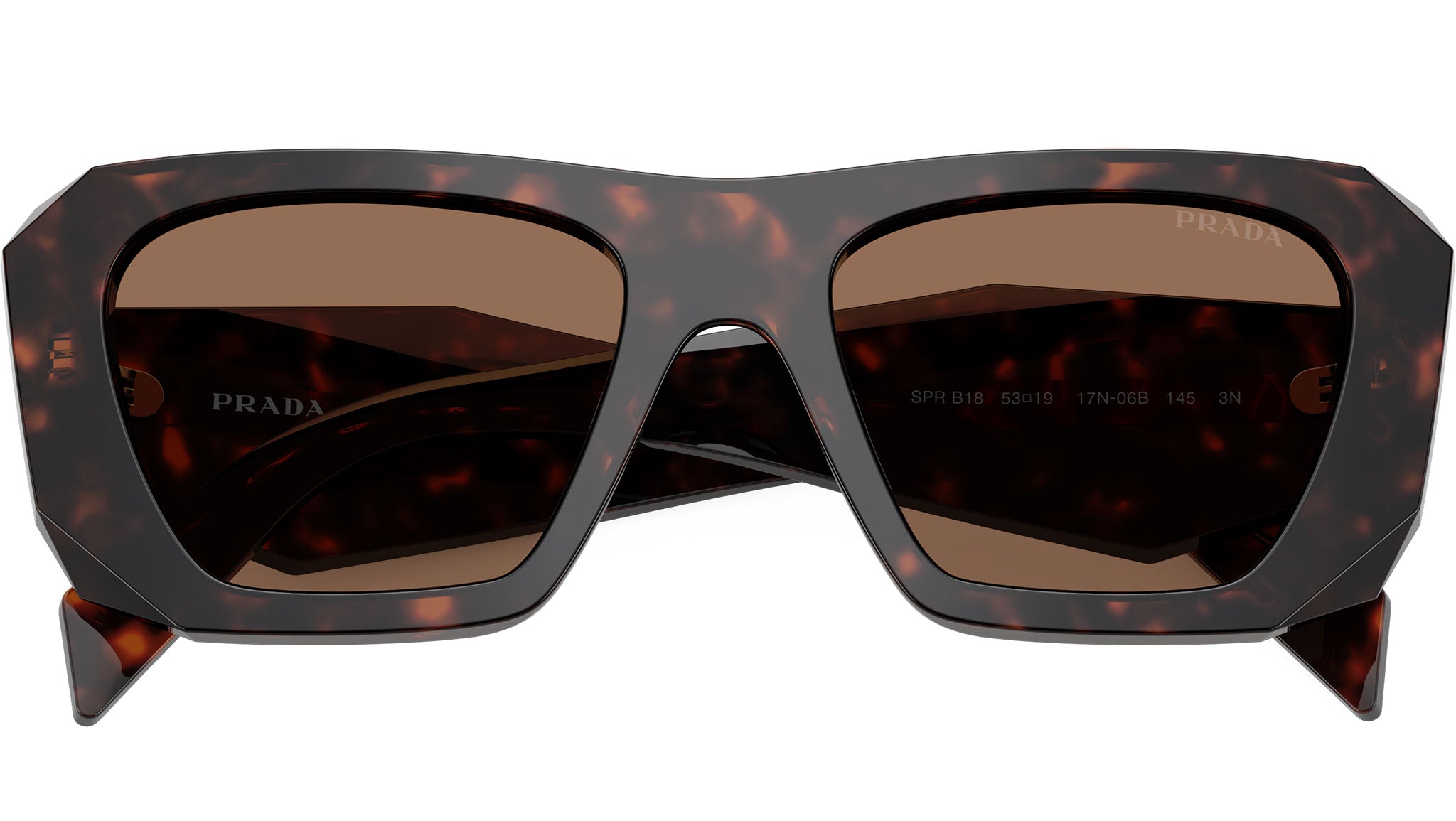 Occhiali da sole Prada PR B18S 17N06B donna con montatura squadrata in acetato tartaruga radice e lenti in bio poliammide color marrone scuro. Vestibilità a ponte alto. Linea: Design. Codice modello: PRB18S. Codice colore: 17N06B. Made in Italy. Rivenditore autorizzato Prada online. Gli occhiali vengono consegnati con custodia e accessori originali e sono coperti dalla garanzia ufficiale di 12 mesi del produttore.