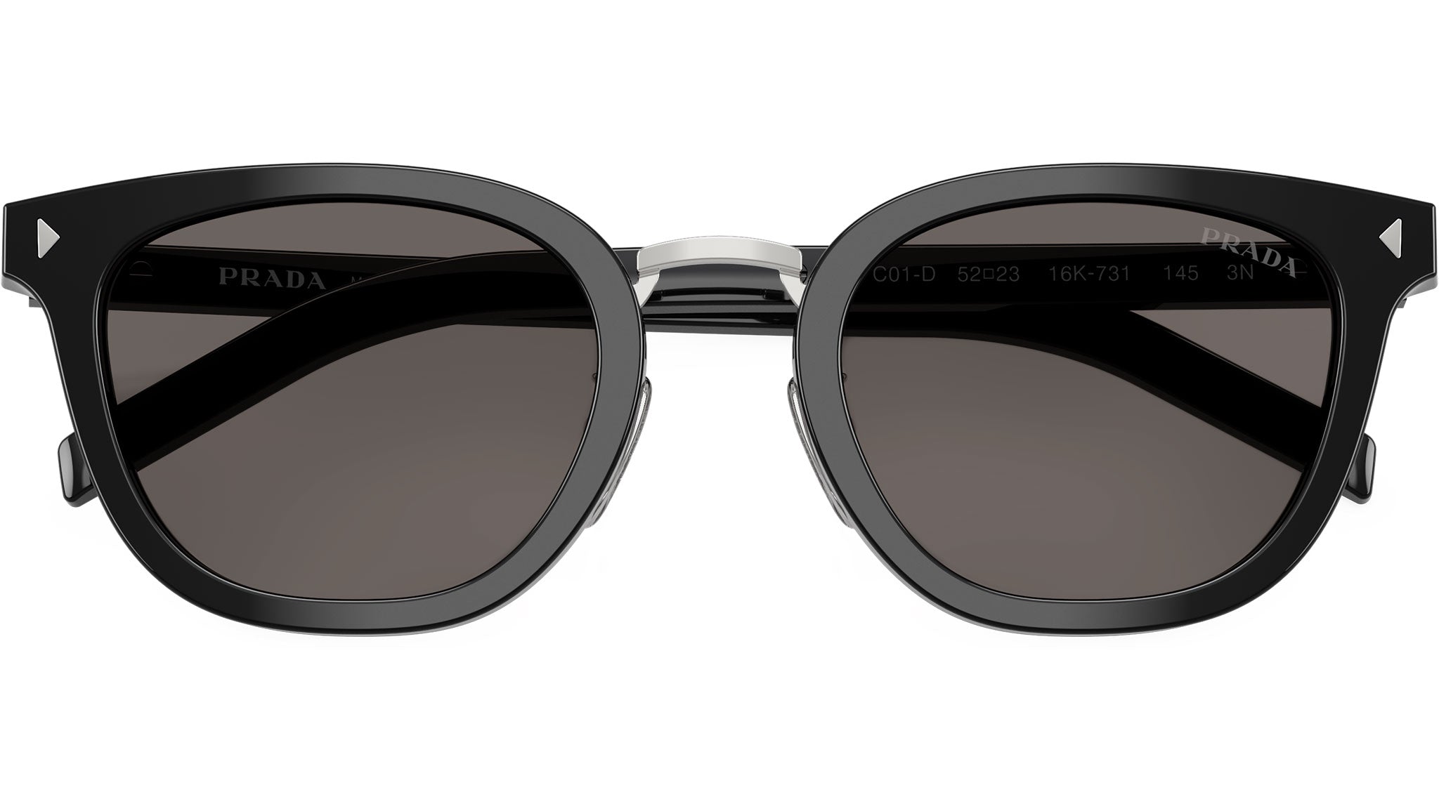 Occhiali da sole Prada PR C01SD 16K731 uomo con montatura cat eye in acetato nero e lenti in cristallo color grigio scuro. Vestibilità a ponte basso. Linea: Heritage. Codice modello: PRC01SD. Codice colore: 16K731. Made in Italy. Rivenditore autorizzato Prada online. Gli occhiali vengono consegnati con custodia e accessori originali e sono coperti dalla garanzia ufficiale di 12 mesi del produttore.