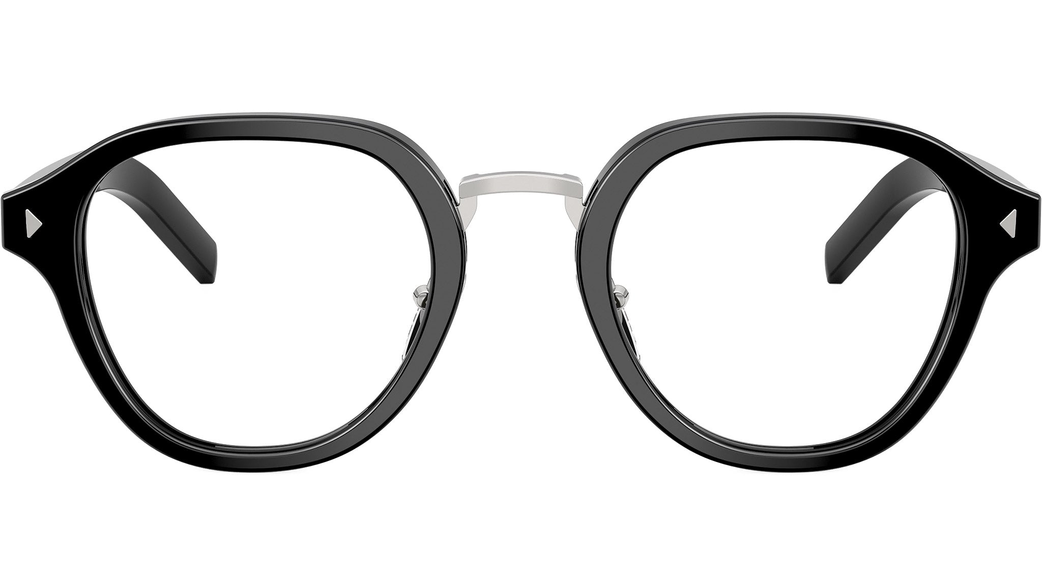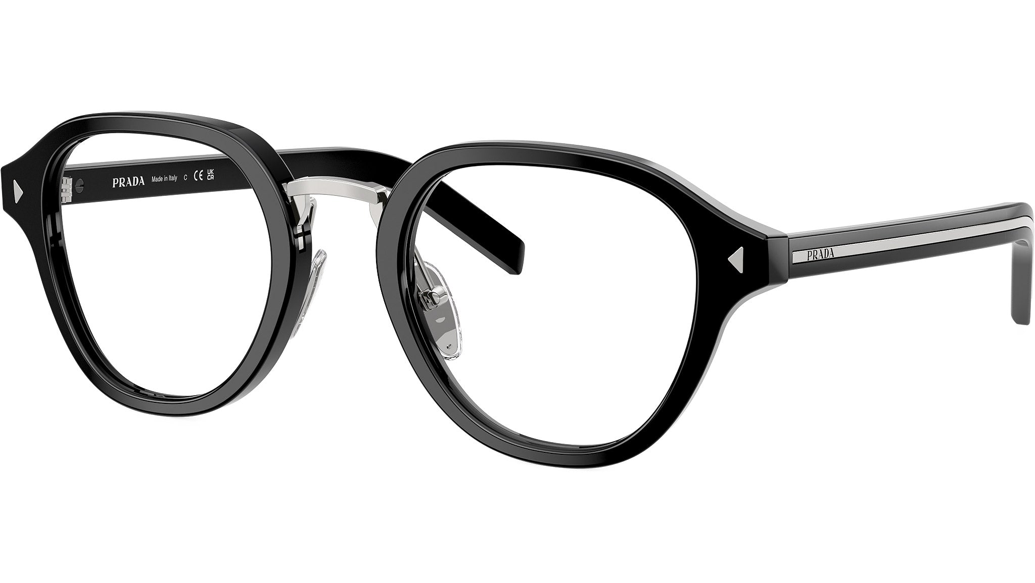 Occhiali da vista Prada PR C05V 16K1O1 uomo con montatura pantos in acetato nero e lenti demo. Naselli regolabili. Linea: Heritage. Codice modello: PRC05V. Codice colore: 16K1O1. Made in Italy. Rivenditore autorizzato Prada online. Gli occhiali vengono consegnati con custodia e accessori originali e sono coperti dalla garanzia ufficiale di 12 mesi del produttore.