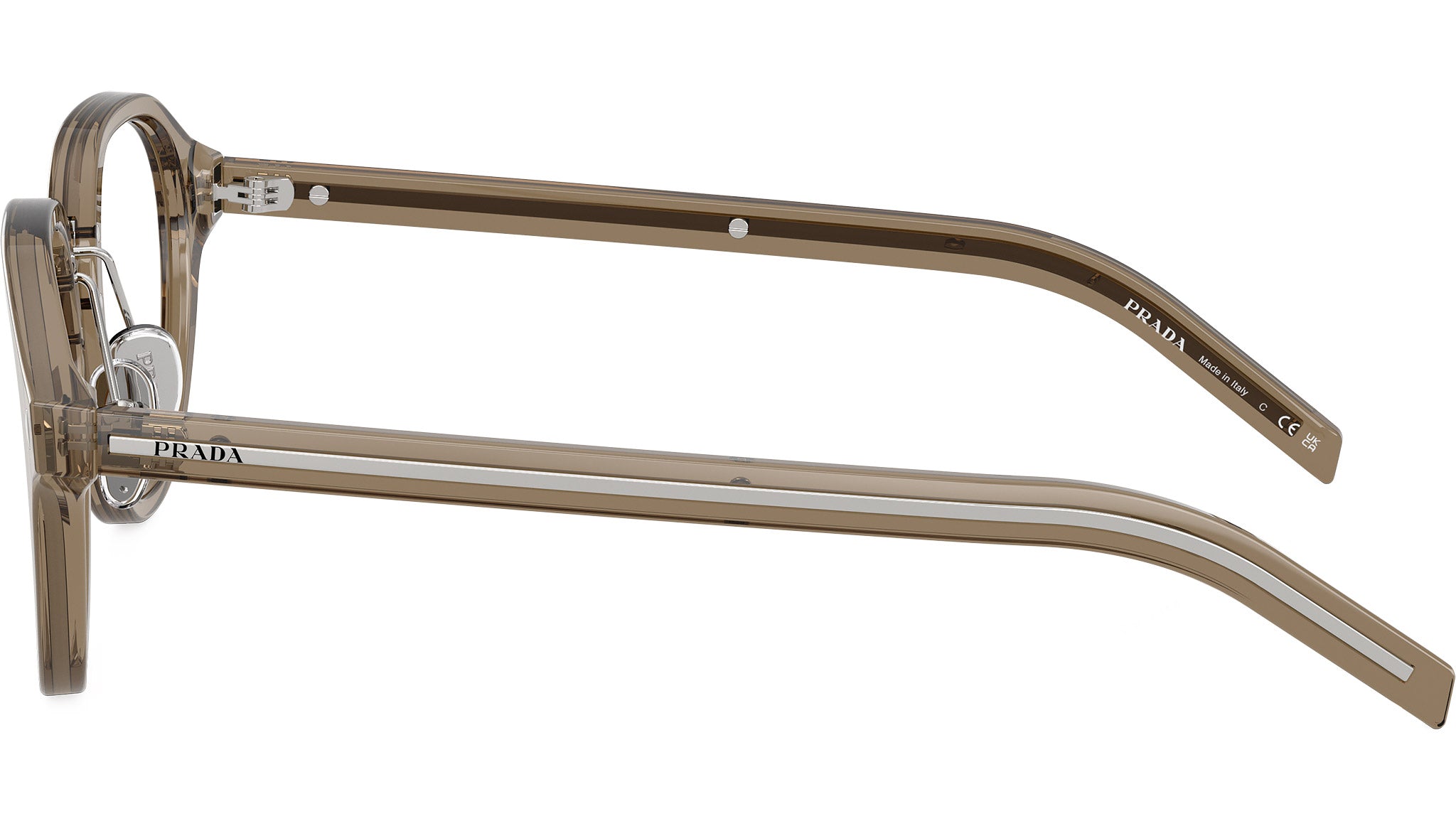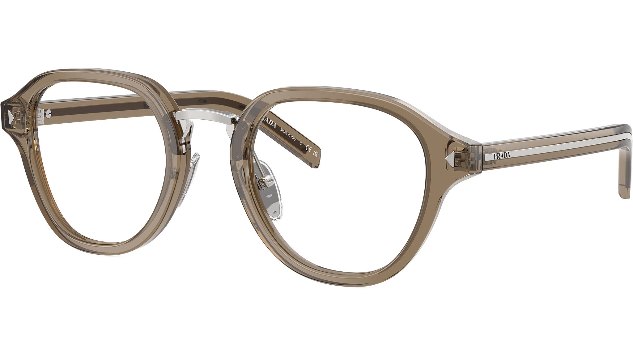 Occhiali da vista Prada PR C05V 18T1O1 uomo con montatura pantos in acetato terra trasparente e lenti demo. Naselli regolabili. Linea: Heritage. Codice modello: PRC05V. Codice colore: 18T1O1. Made in Italy. Rivenditore autorizzato Prada online. Gli occhiali vengono consegnati con custodia e accessori originali e sono coperti dalla garanzia ufficiale di 12 mesi del produttore.