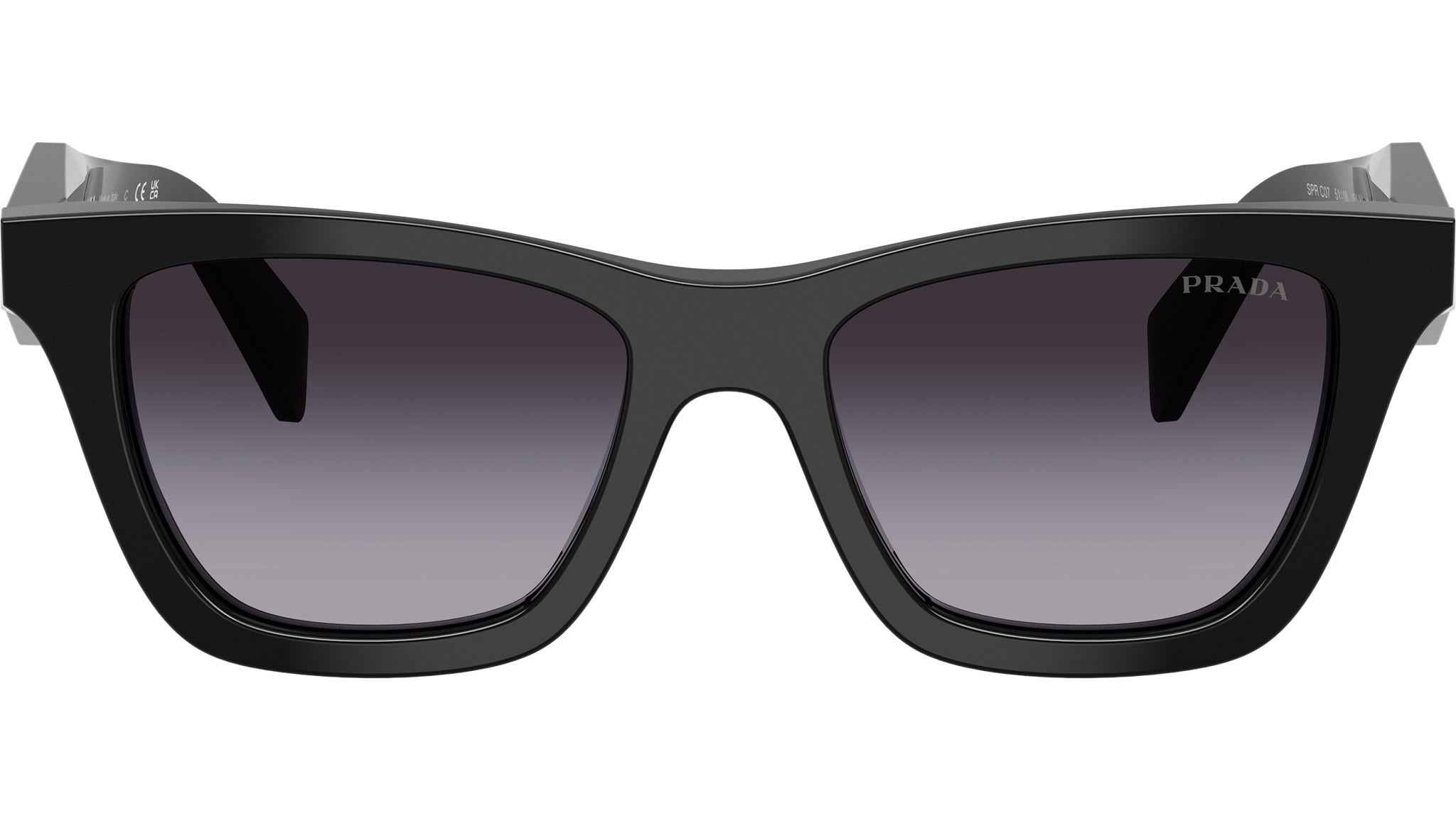 Occhiali da sole Prada PR C07S 16K90A donna con montatura butterfly in acetato nero e lenti in bio poliammide color grigio sfumato. Vestibilità a ponte alto. Linea: Design. Codice modello: PRC07S. Codice colore: 16K90A. Made in Italy. Rivenditore autorizzato Prada online. Gli occhiali vengono consegnati con custodia e accessori originali e sono coperti dalla garanzia ufficiale di 12 mesi del produttore.