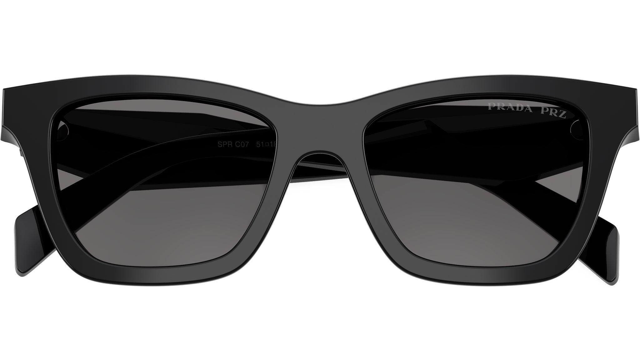 Occhiali da sole Prada PR C07S 16K90T donna con montatura butterfly in acetato nero e lenti in CR-39 color grigio scuro. Vestibilità a ponte alto. Linea: Design. Codice modello: PRC07S. Codice colore: 16K90T. Made in Italy. Rivenditore autorizzato Prada online. Gli occhiali vengono consegnati con custodia e accessori originali e sono coperti dalla garanzia ufficiale di 12 mesi del produttore.