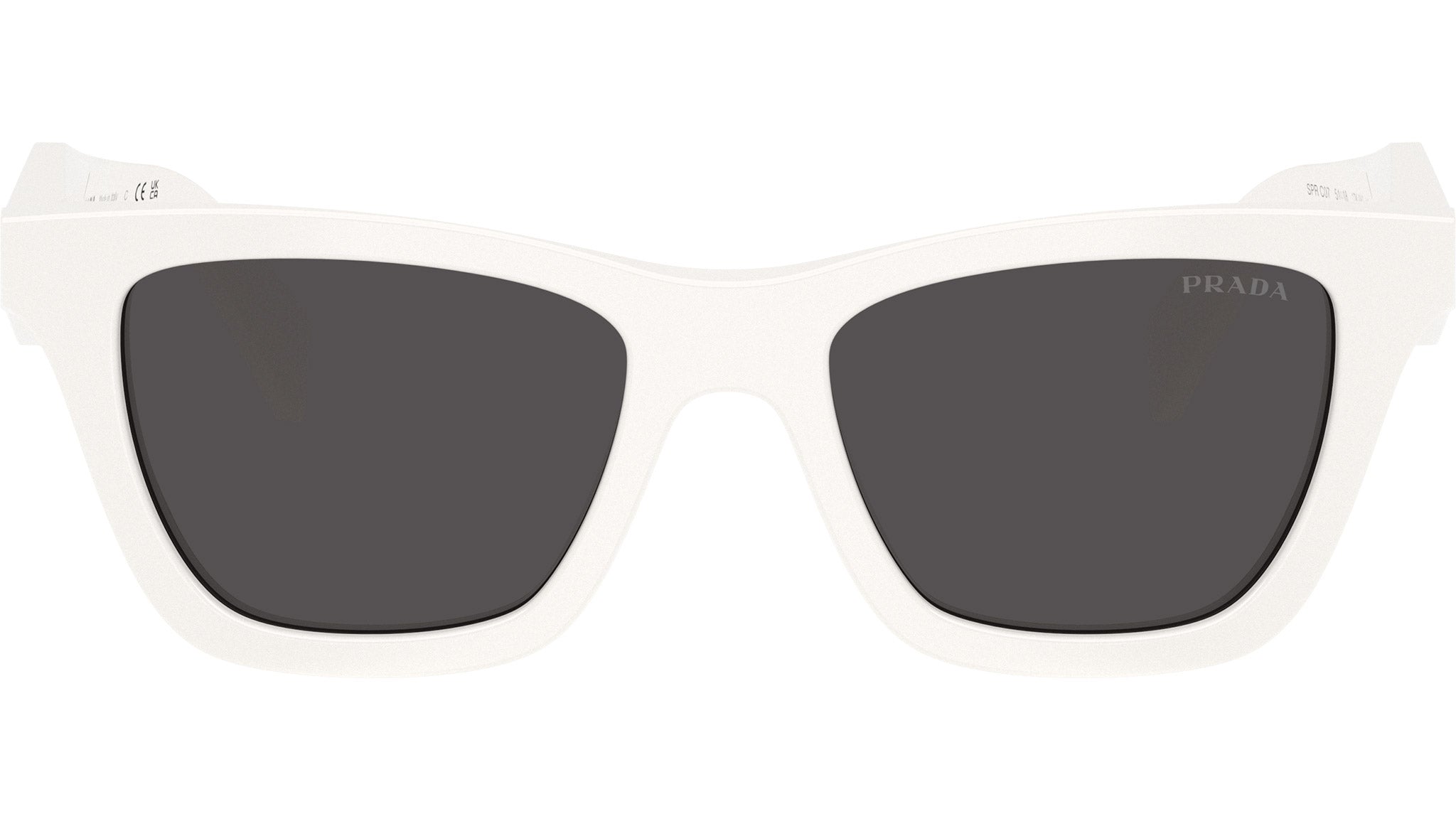 Occhiali da sole Prada PR C07S 17K08Z donna con montatura butterfly in acetato talco e lenti in bio poliammide color grigio scuro. Vestibilità a ponte alto. Linea: Design. Codice modello: PRC07S. Codice colore: 17K08Z. Made in Italy. Rivenditore autorizzato Prada online. Gli occhiali vengono consegnati con custodia e accessori originali e sono coperti dalla garanzia ufficiale di 12 mesi del produttore.
