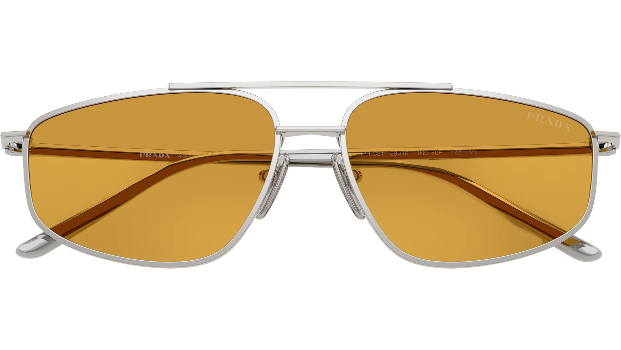 Occhiali da sole Prada PR C51S 1BC50P donna con montatura d-frame in metallo argento e lenti in bio poliammide color miele scuro. Naselli regolabili. Linea: Essential. Codice modello: PRC51S. Codice colore: 1BC50P. Made in Italy. Rivenditore autorizzato Prada online. Gli occhiali vengono consegnati con custodia e accessori originali e sono coperti dalla garanzia ufficiale di 12 mesi del produttore.