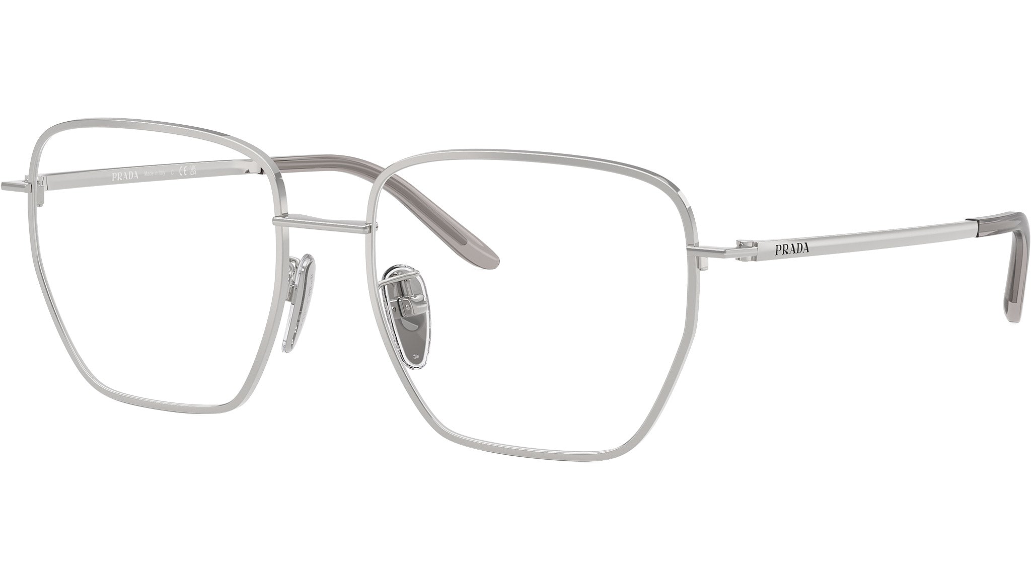 Occhiali da vista Prada PR C51VD 1BC1O1 donna con montatura squadrata in metallo argento e lenti demo. Vestibilità a ponte basso. Linea: Essential. Codice modello: PRC51VD. Codice colore: 1BC1O1. Made in Italy. Rivenditore autorizzato Prada online. Gli occhiali vengono consegnati con custodia e accessori originali e sono coperti dalla garanzia ufficiale di 12 mesi del produttore.