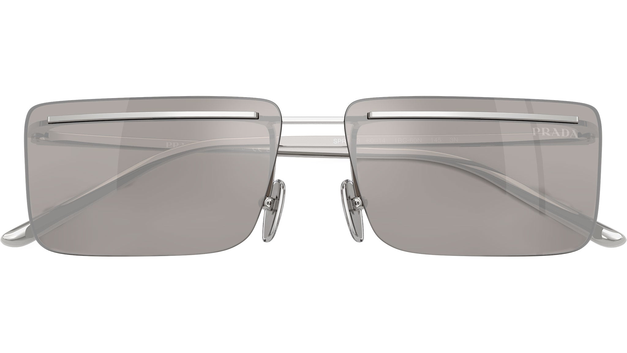 Occhiali da sole Prada PR C53S 1BC60N uomo con montatura rettangolare in metallo argento e lenti in bio poliammide color grigio chiaro a specchio argento. Naselli regolabili. Linea: Essential. Codice modello: PRC53S. Codice colore: 1BC60N. Made in Italy. Rivenditore autorizzato Prada online. Gli occhiali vengono consegnati con custodia e accessori originali e sono coperti dalla garanzia ufficiale di 12 mesi del produttore.