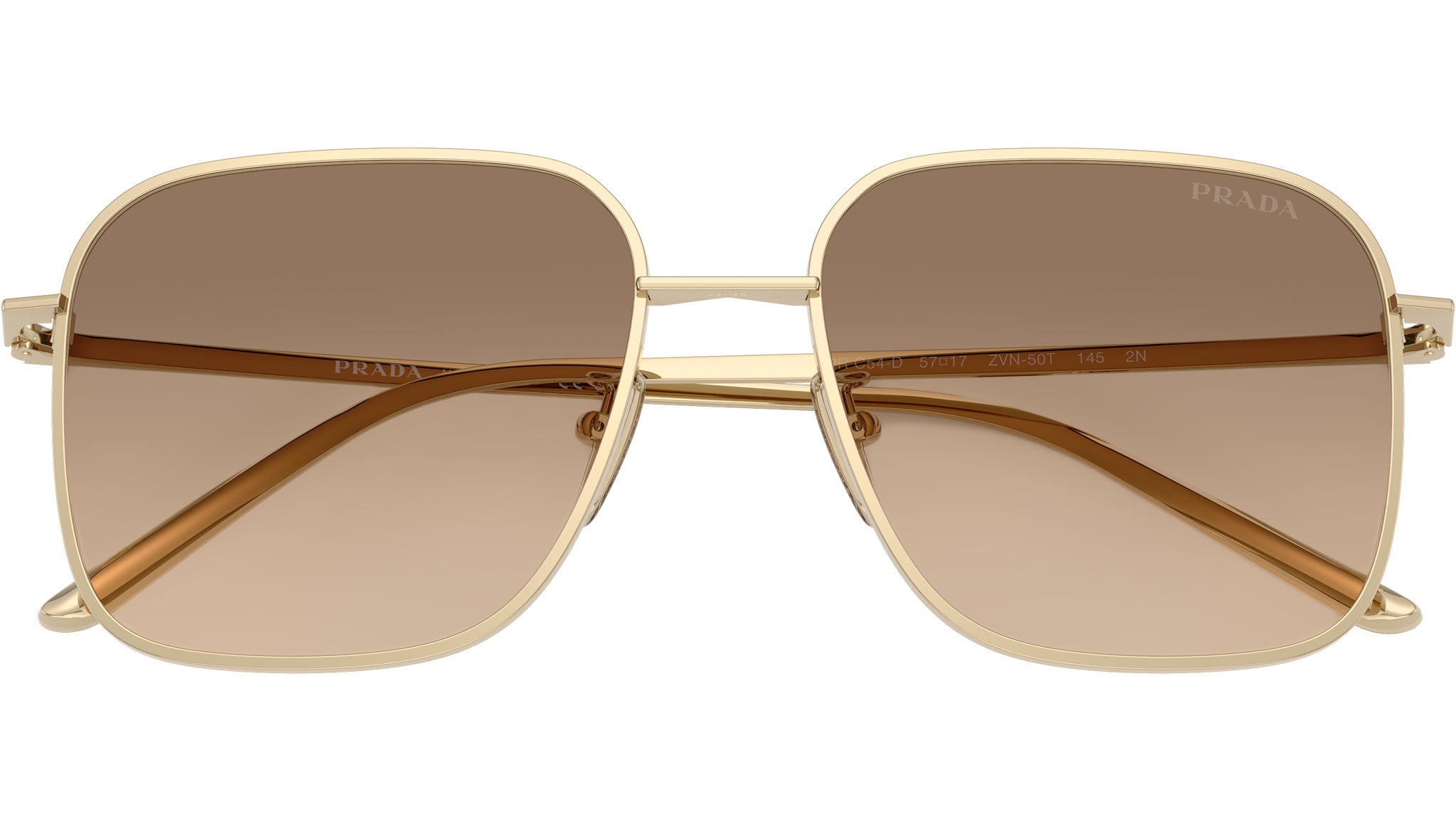 Occhiali da sole Prada PR C54SD ZVN50T donna con montatura squadrata in metallo oro chiaro e lenti in bio poliammide color marrone sfumato grigio chiaro. Vestibilità a ponte basso. Linea: Essential. Codice modello: PRC54SD. Codice colore: ZVN50T. Made in Italy. Rivenditore autorizzato Prada online. Gli occhiali vengono consegnati con custodia e accessori originali e sono coperti dalla garanzia ufficiale di 12 mesi del produttore.