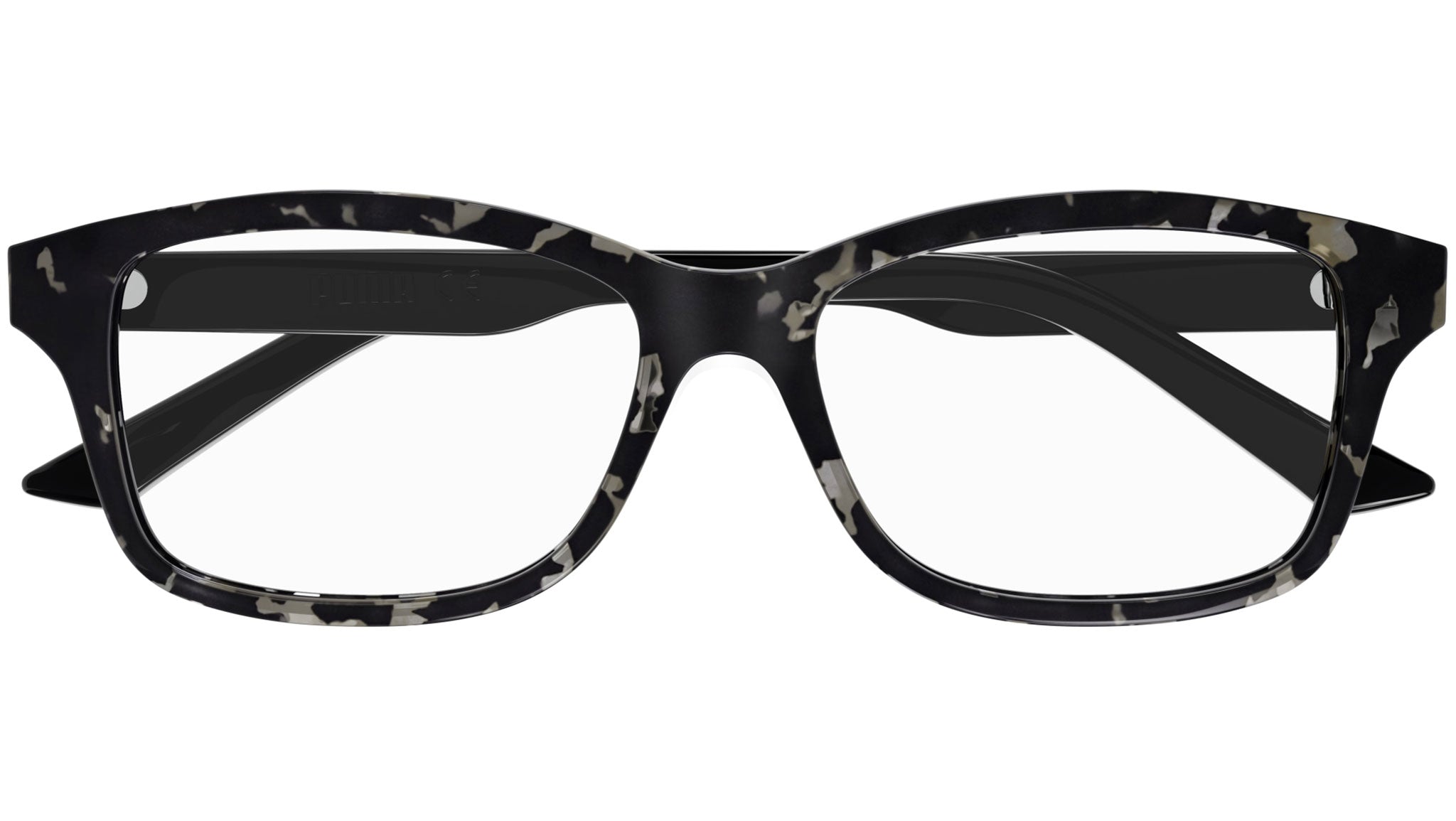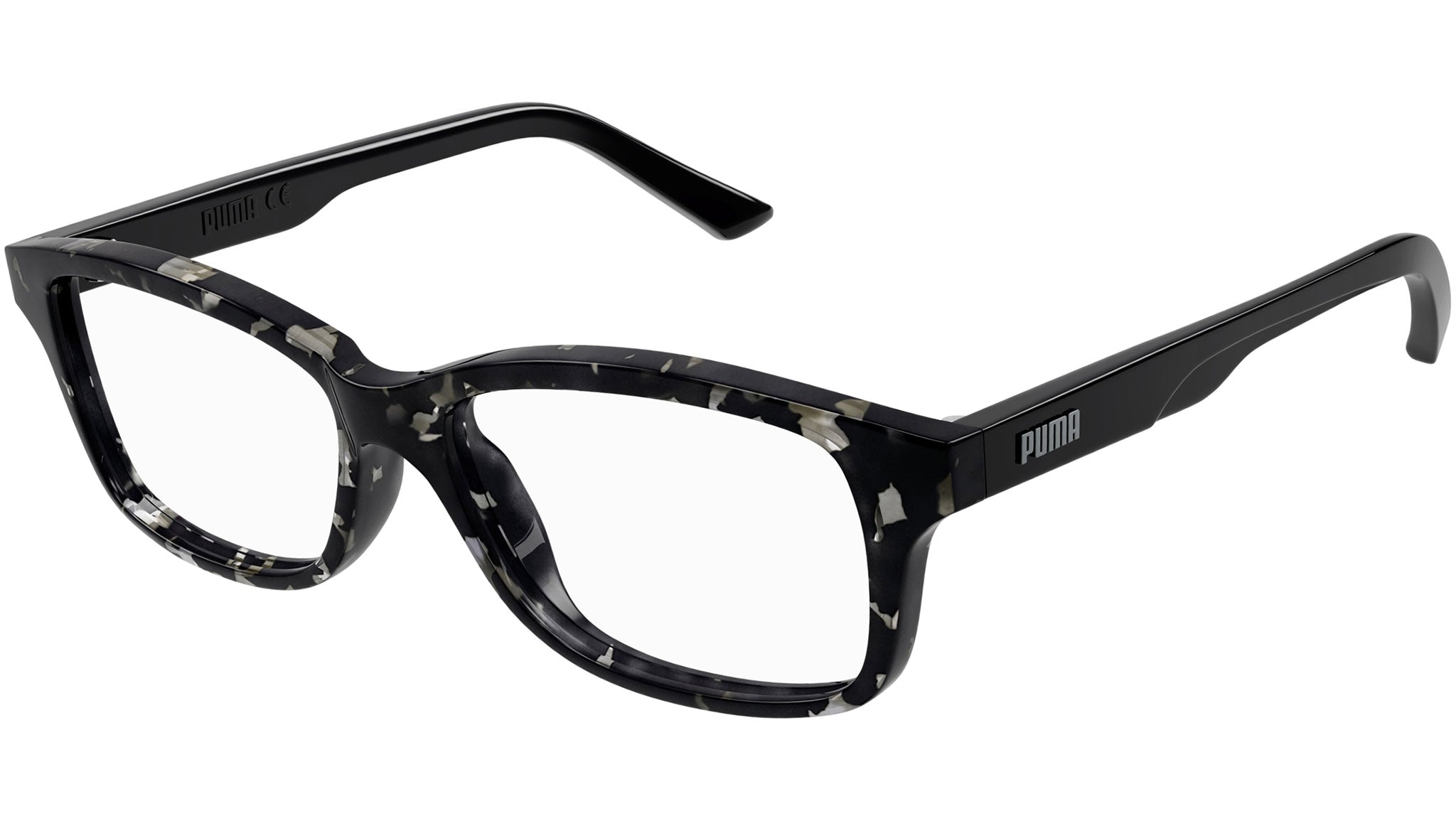 Occhiali da vista Puma Junior modello PJ0072OA variante colore 002 nero maculato avana lucido con lenti demo.