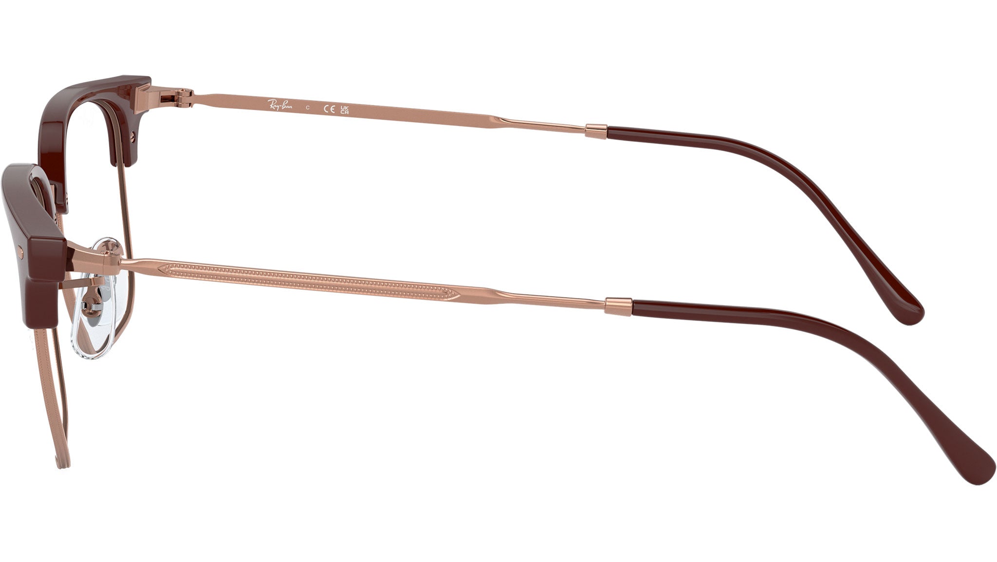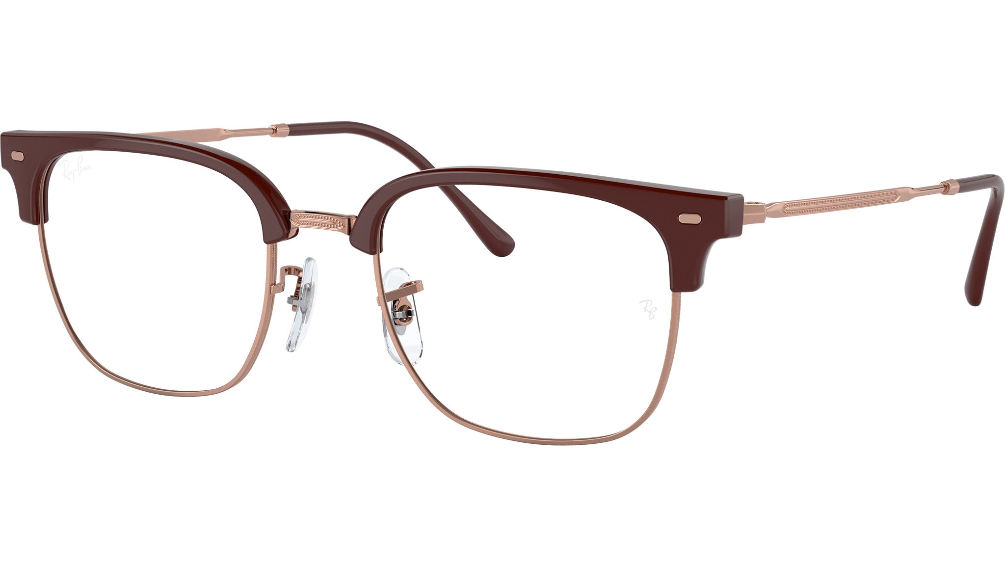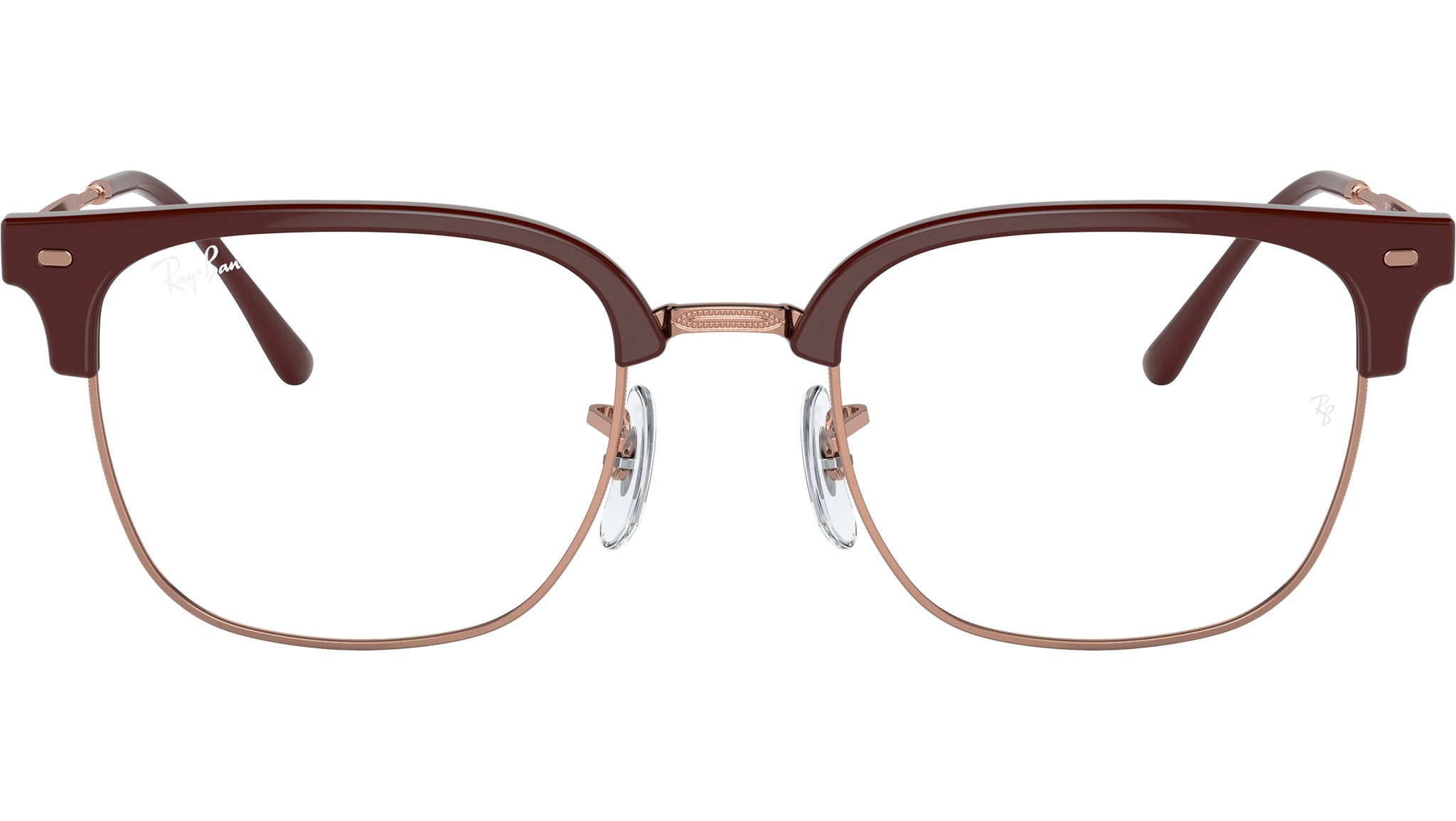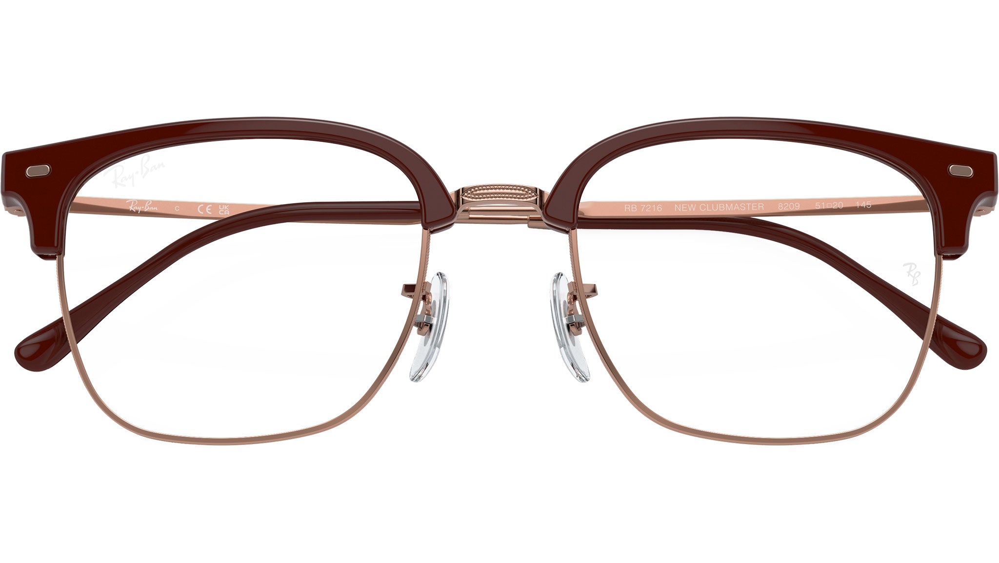 Occhiali da vista Ray-Ban New Clubmaster RB7216 8209 unisex con montatura squadrata in propionato bordeaux su oro rosa e lenti demo. Naselli regolabili. Linea: Evolution. Codice modello: 0RX7216. Codice colore: 8209. Rivenditore autorizzato Ray-Ban online. Gli occhiali vengono consegnati con custodia e accessori originali e sono coperti dalla garanzia ufficiale di 12 mesi del produttore.