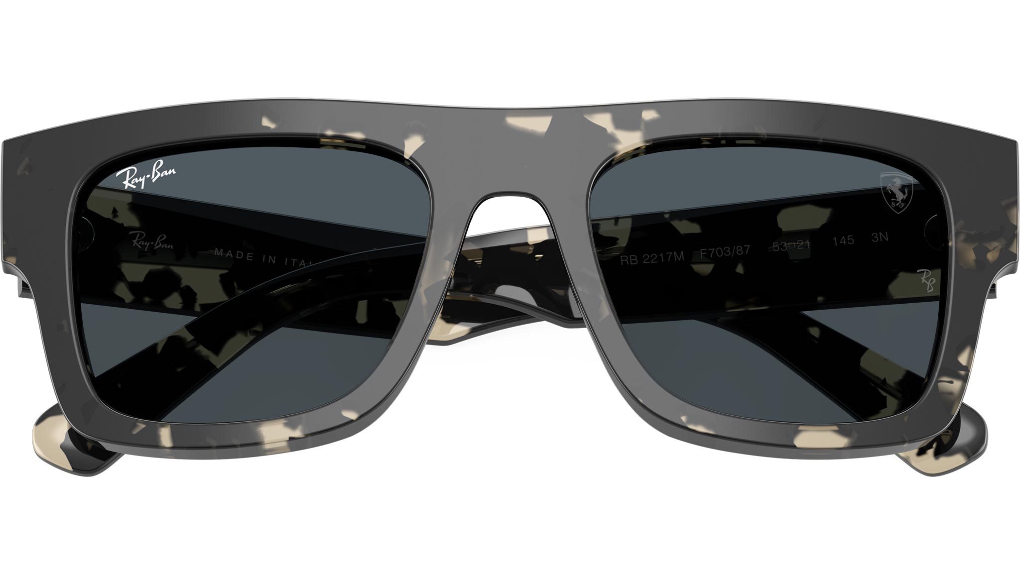 Occhiali da sole Ray-Ban RB2217M RB2217M F70387 unisex con montatura squadrata in acetato grigio avana e lenti in poliammide color grigio scuro. Vestibilità a ponte alto. Linea: Ferrari. Codice modello: 0RB2217M. Codice colore: F70387. Rivenditore autorizzato Ray-Ban online. Gli occhiali vengono consegnati con custodia e accessori originali e sono coperti dalla garanzia ufficiale di 12 mesi del produttore.