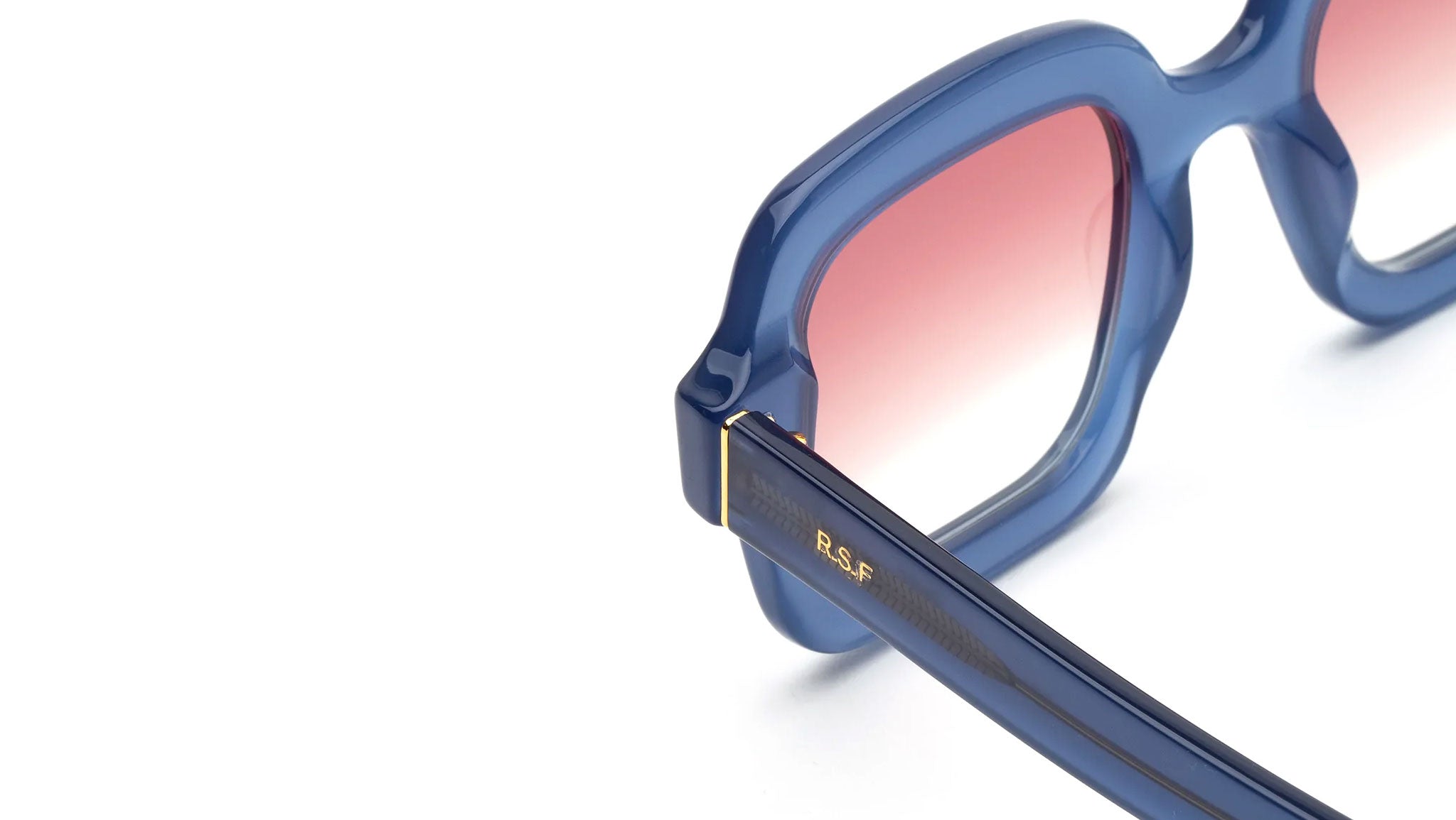 Benz is a stand-out silhouette that matches timeless 1960s flair with sharp contemporary detailing. With a smooth, rounded oversized frame, Benz captures the classic glamour of the Mediterranean Riviera, updated with chiseled interiors for a more lightweight and modern design. The model’s construction appears buttery, softening its heavyweight, bold features. This version of Benz comes in a soft and creamy blue acetate with Bordeaux tinted lenses.