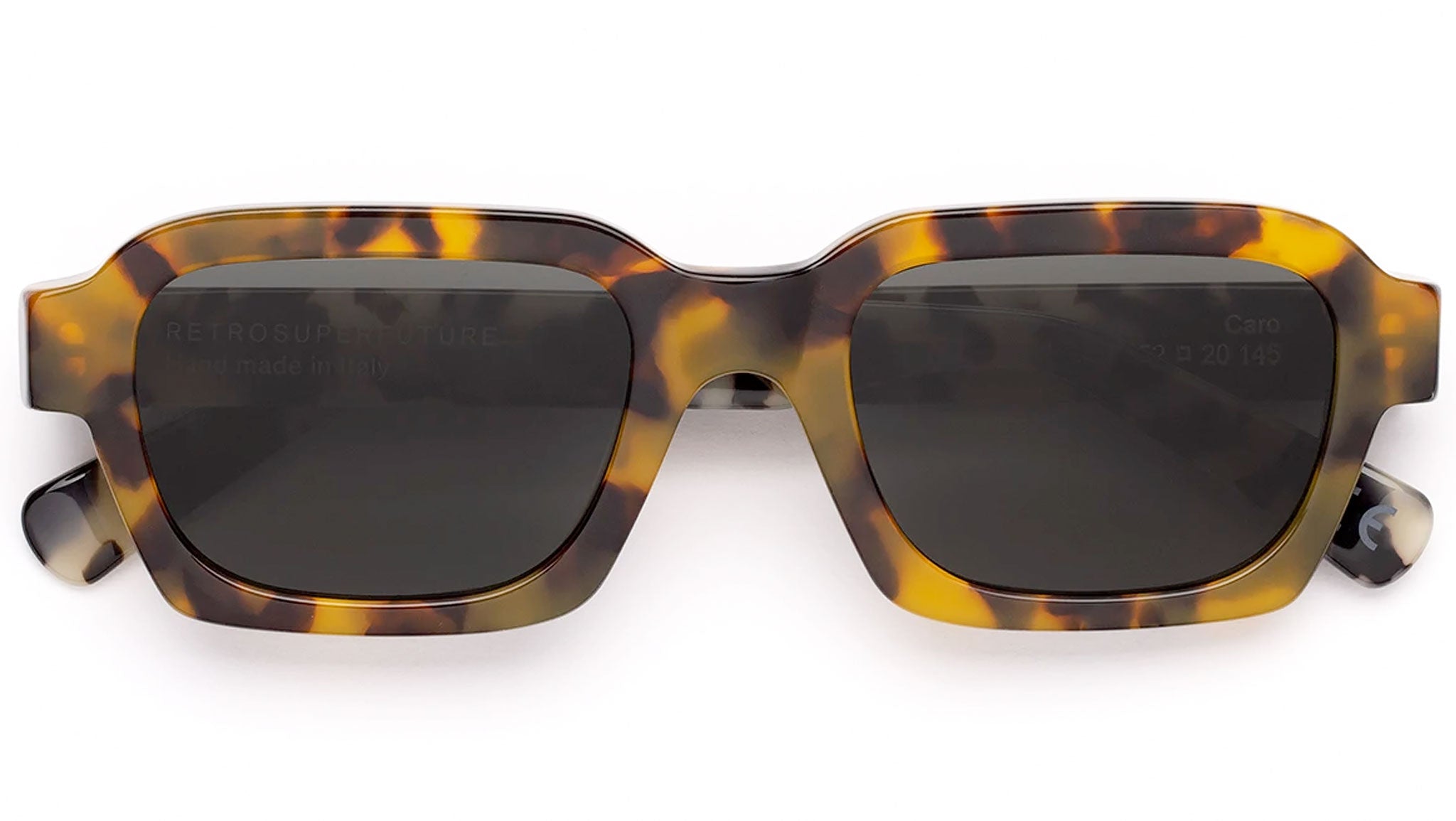 Caro is a wide, geometric silhouette that blends 1960s Italianclassicism with 1990s grunge aesthetic. The model features a well-rounded design with a thick, sturdy acetate structure, squared temple tips and angular rims on the lower half of the frame. This version of Caro comes with tinted blue lenses, electric blue frontal piece and black temples. The box contains a semi-hard case and a cleaning cloth.