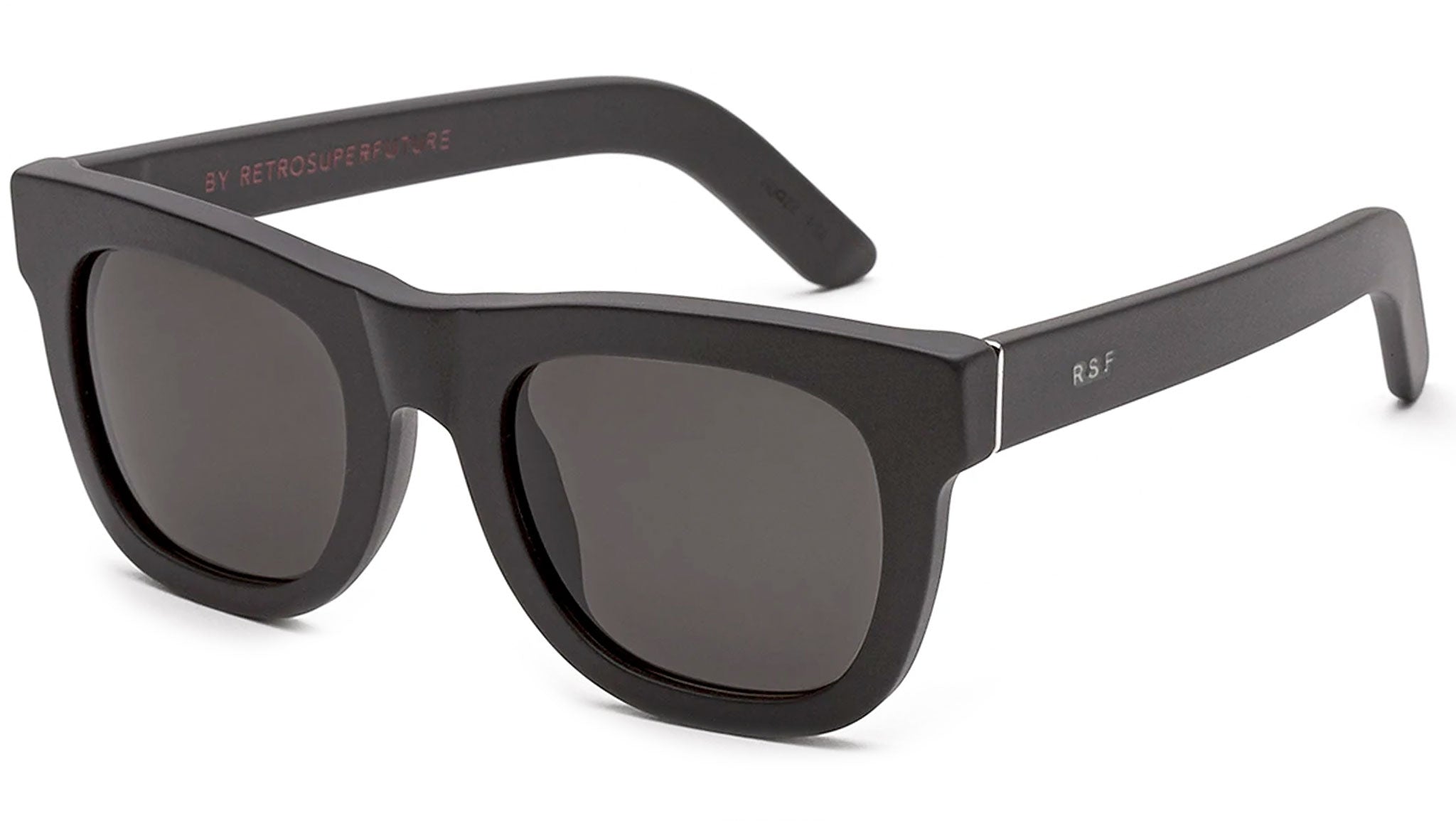 Ciccio Black Matte is a part of a darkly melancholic and slightly grim series of sunglasses. Ciccio, a timeless Super classic, appeared the perfect match for a brand new black matte acetate finishing, with its stripped-down, essential aesthetics, yet thick, bold lines. Ciccio Black Matte sports lenses by Zeiss in black. The box contains a soft case and a cleaning cloth.