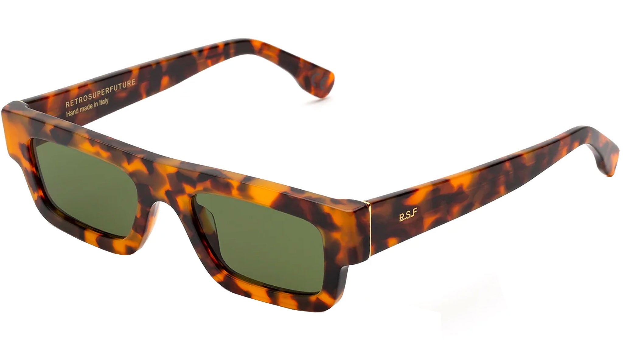Colpo is an iconic contemporary silhouette that merges vintage references with the current zeitgeist. With its low, compact profile, Colpo is inspired both by chunky 1960s frames as well as futuristic visions. Its straight, sharp brow line makes this a statement piece of eyewear. Colpo will be the ubiquitous, stand-out model of the season, seen on the streets of Milan and Paris, New York and Tokyo. This version of Colpo comes in a spotted Havana acetate with bottle green lenses.