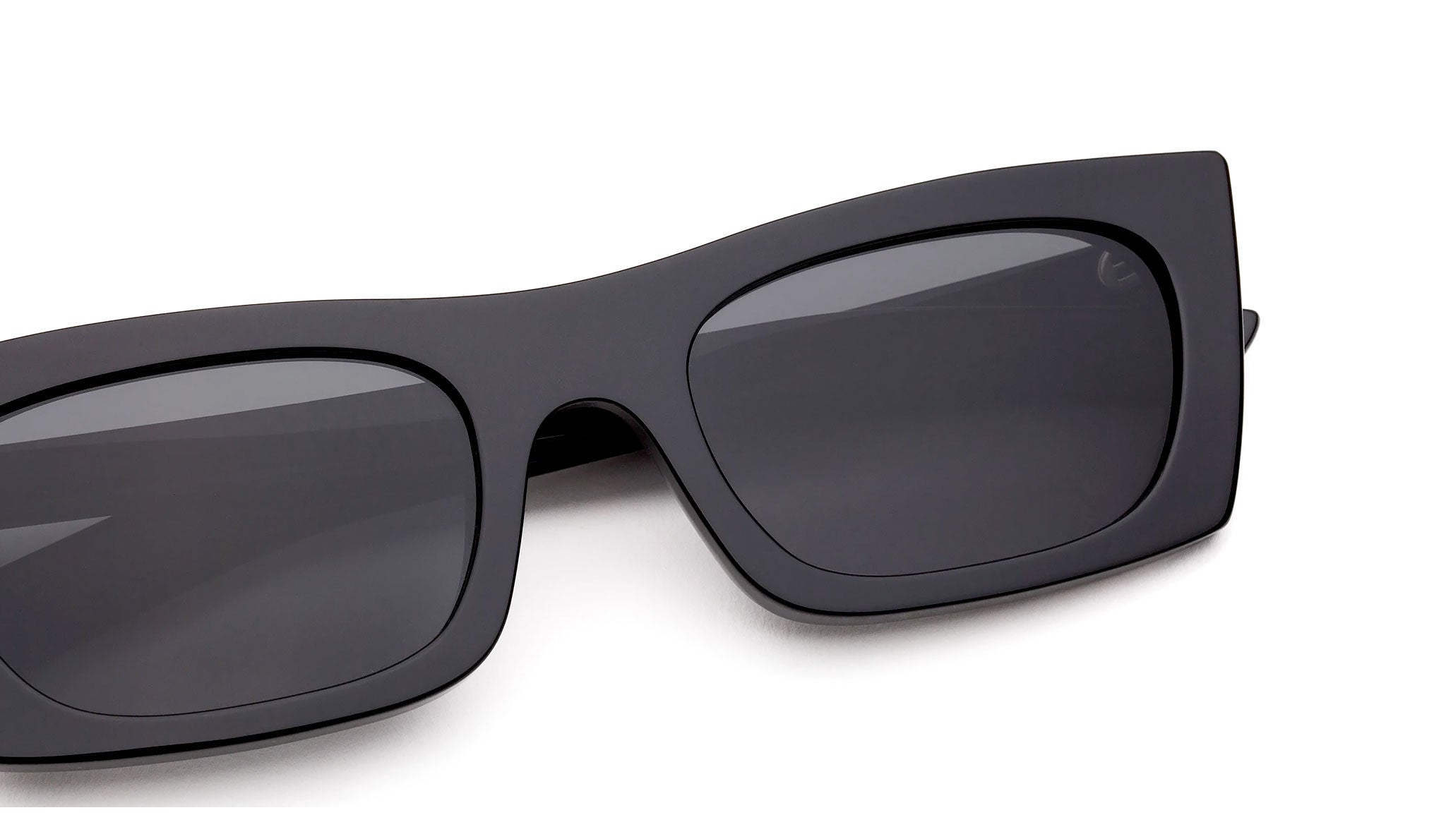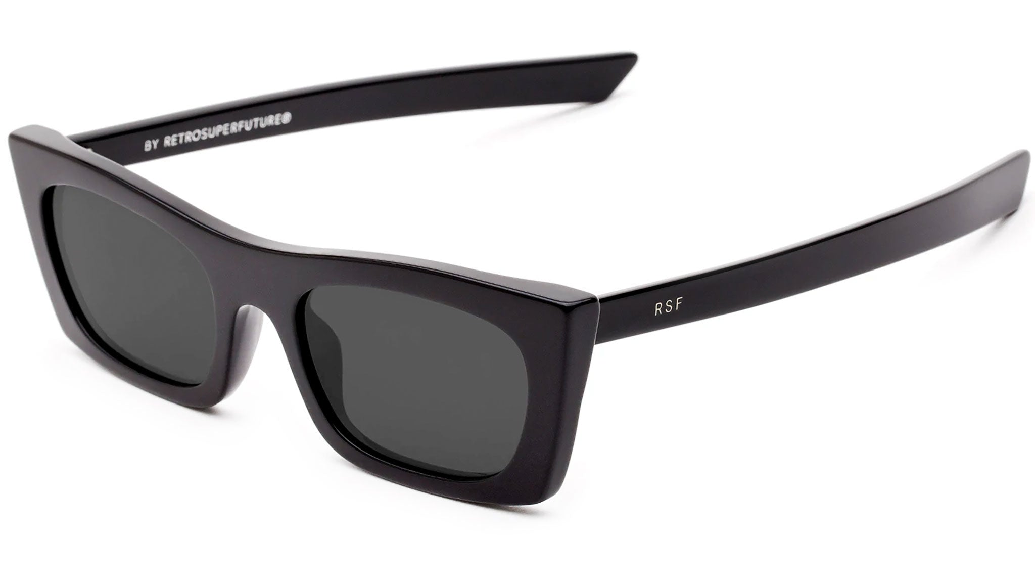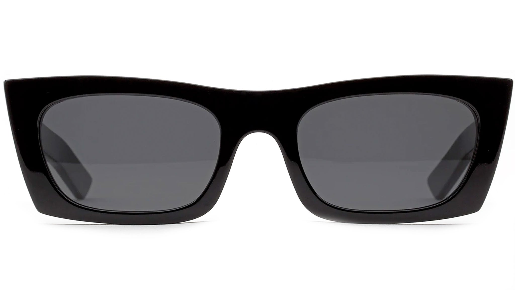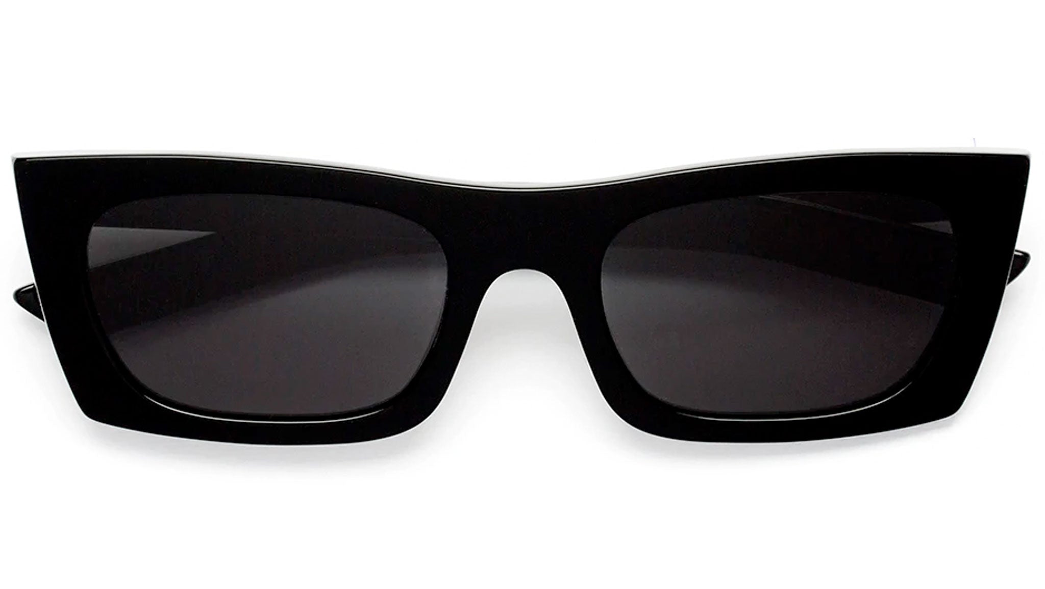 Fred Black is a radical silhouette inspired by 1990s street style aesthetics interpreted with a raw contemporary sensibility. The model is characterized by a sharp angular design that features a low frontal piece, thick arms and a sculptural profile crafted by merging two layers of acetate. This model features an all-black frame paired with sleek black lenses. The box contains a soft case and a cleaning cloth.