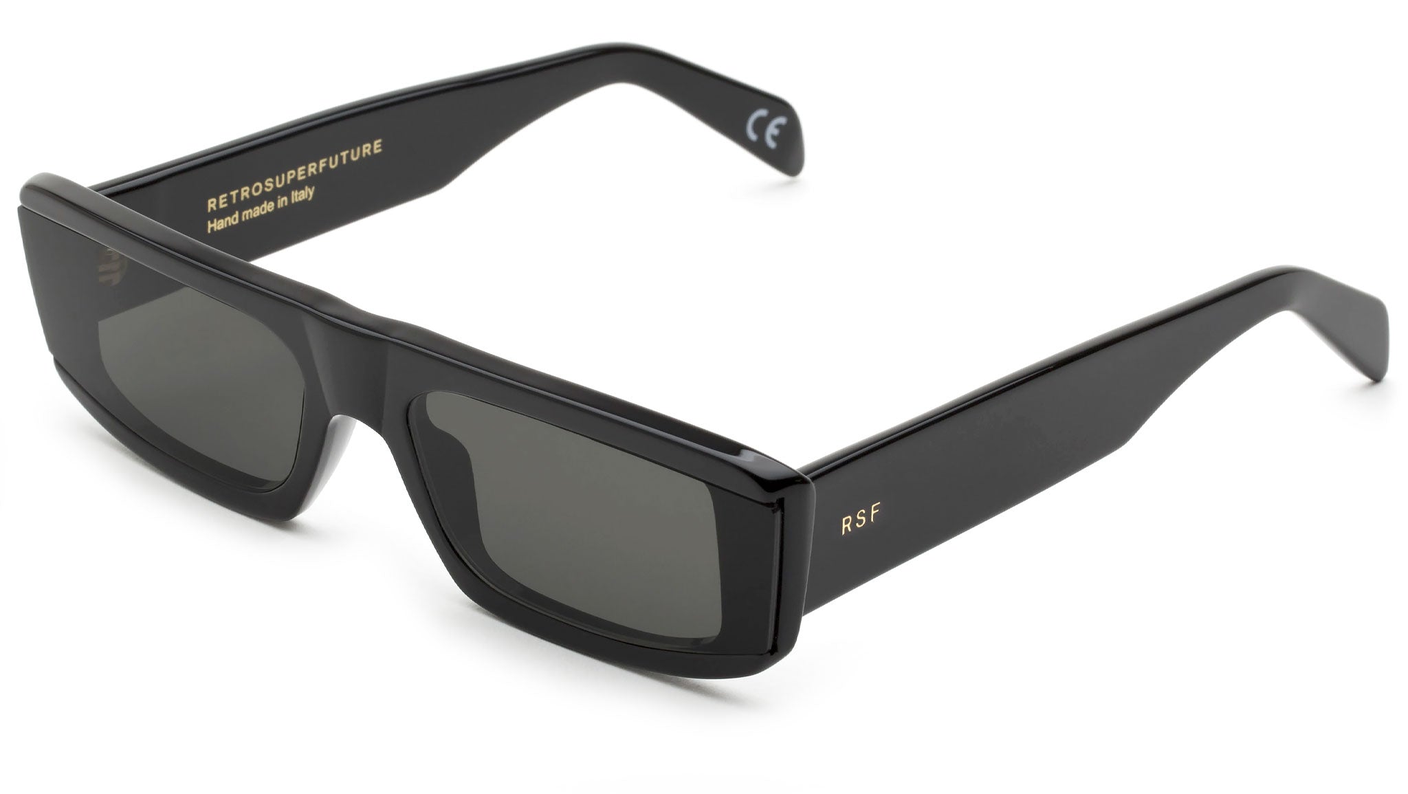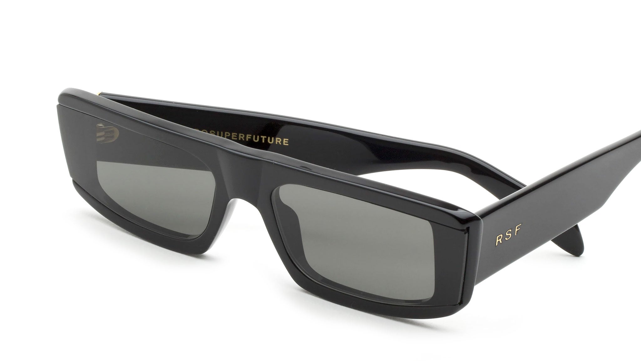 Issimo is a streamlined, low-riding shape that captures the sports-infused aesthetics. Issimo features angular curves, thick temples and wide horizontal lenses, mounted on top of the acetate frame for a sharp stylistic edge. This version of Issimo comes with black lenses and a shiny black acetate. The box contains a semi-hard case and a cleaning cloth.
