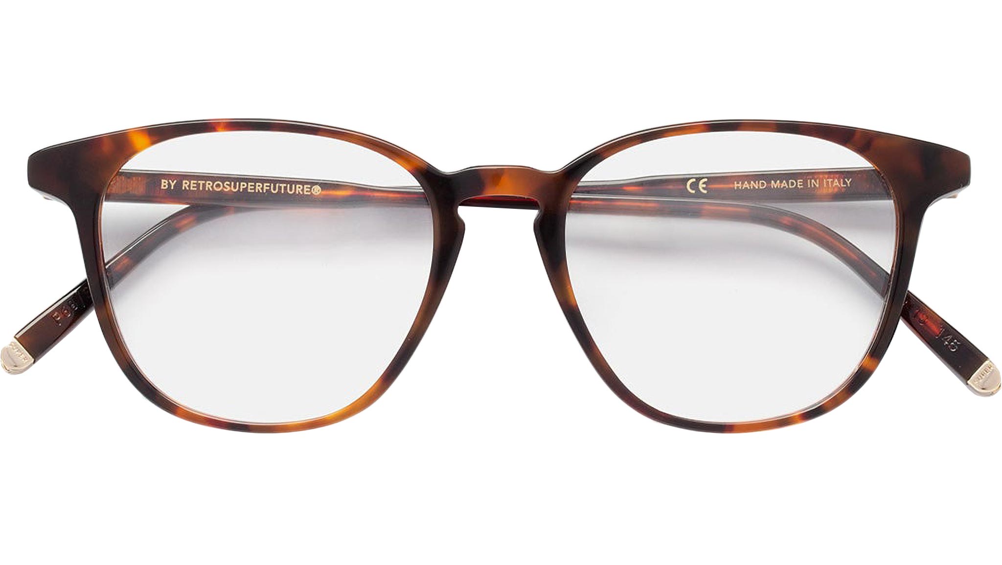 Numero 51 by Retrosuperfuture is a timeless everyday frame, characterized by a square outline and carefully crafted rims. With its wide rectangular lenses and sturdy temple tips this is a minimal everyday silhouette that comes in a rich Havana acetate with gold detailing. Prescription lenses not included. The box contains a hard case and a cleaning cloth.