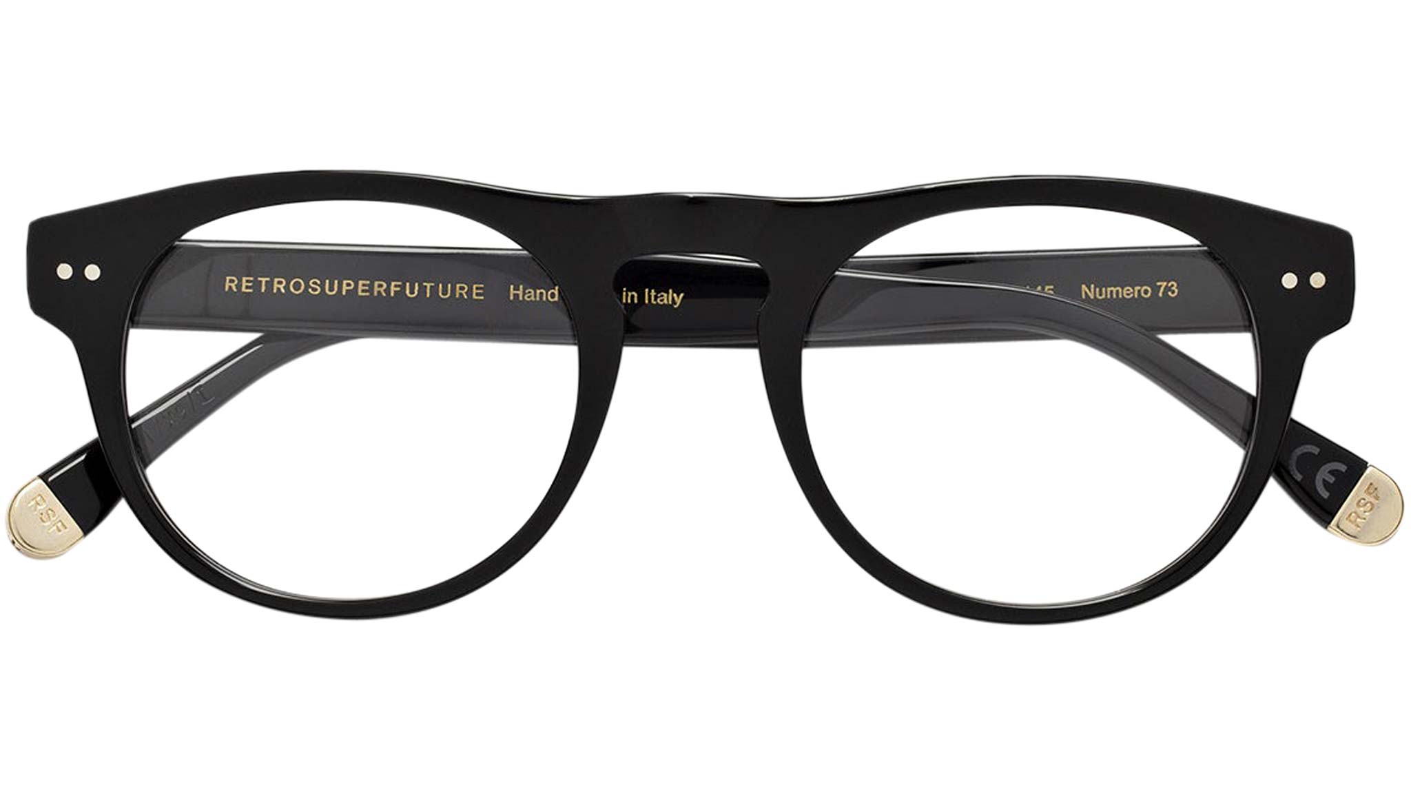 A modern interpretation of RSF’s classic everyday frames, Numero 73 is an oversized Optical silhouette designed with an eye towards bold streetwear aesthetics. The frame features well-rounded lenses, extra comfortable fit, sleek temples matched with an arched nose-bridge that gives it a sharp edge. This model comes in a shiny black acetate. Prescription lenses not included. The box contains a hard case and a cleaning cloth. Sizes: R Lens Width: 49 mm. Frame Front: 146 mm. Frame Side: 145 mm. Product Code Size R: 6II