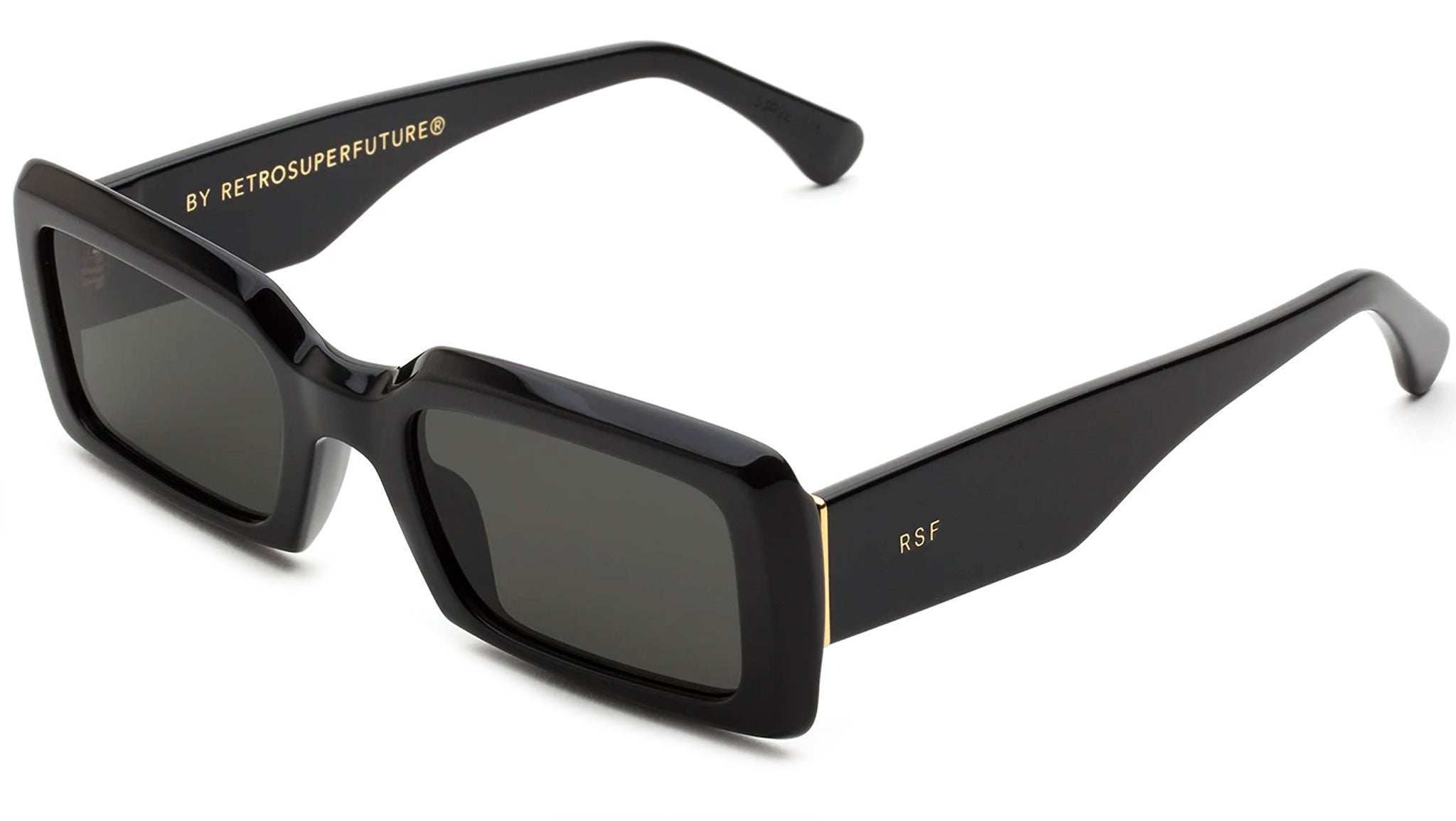 Sacro blends vintage references with cutting-edge modern design. The silhouette is characterized by a rectangular oversized shape with squared lenses and chiseled edges on its thick moulded rims. Sacro comes with a black acetate and matching lenses.