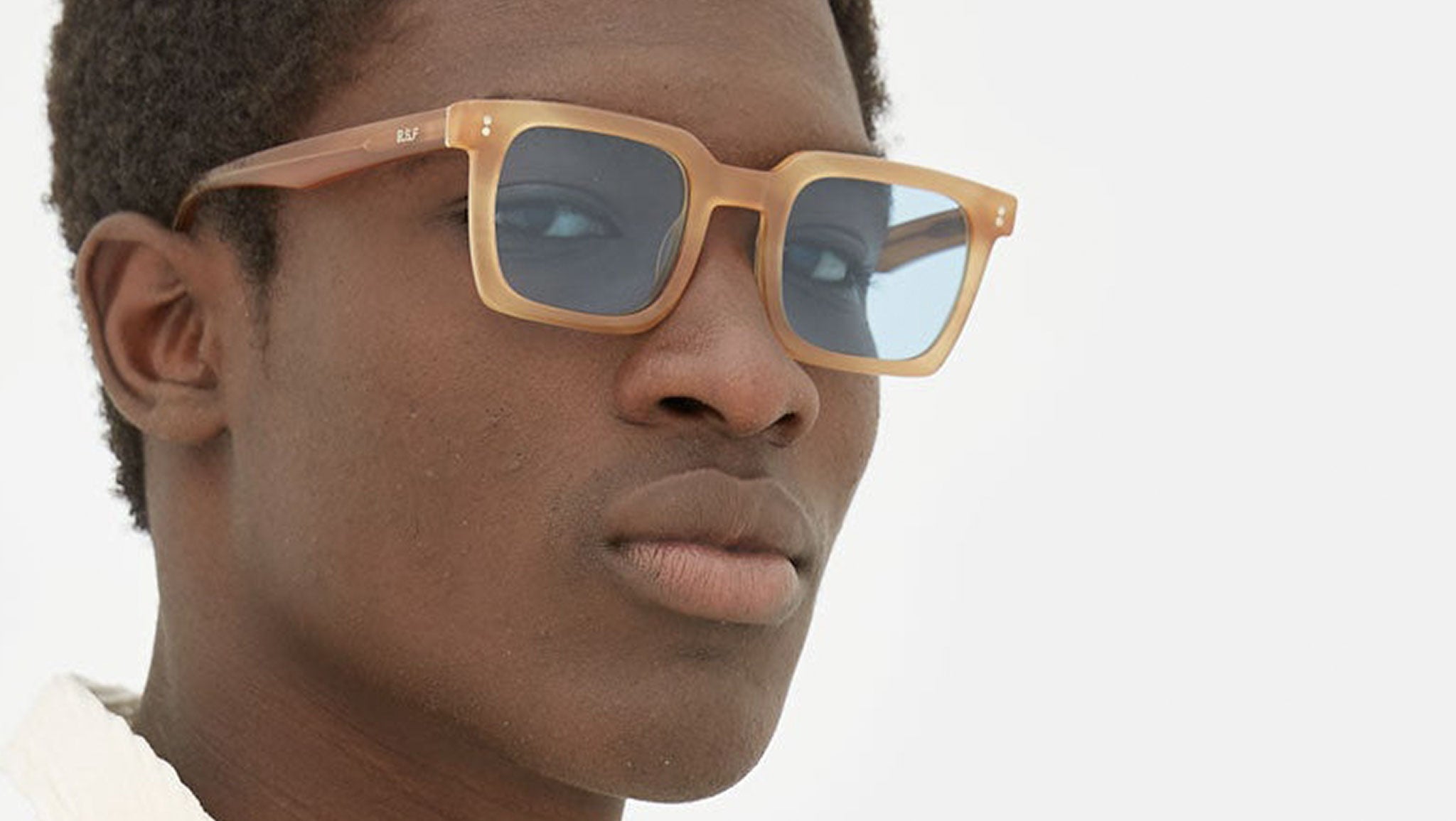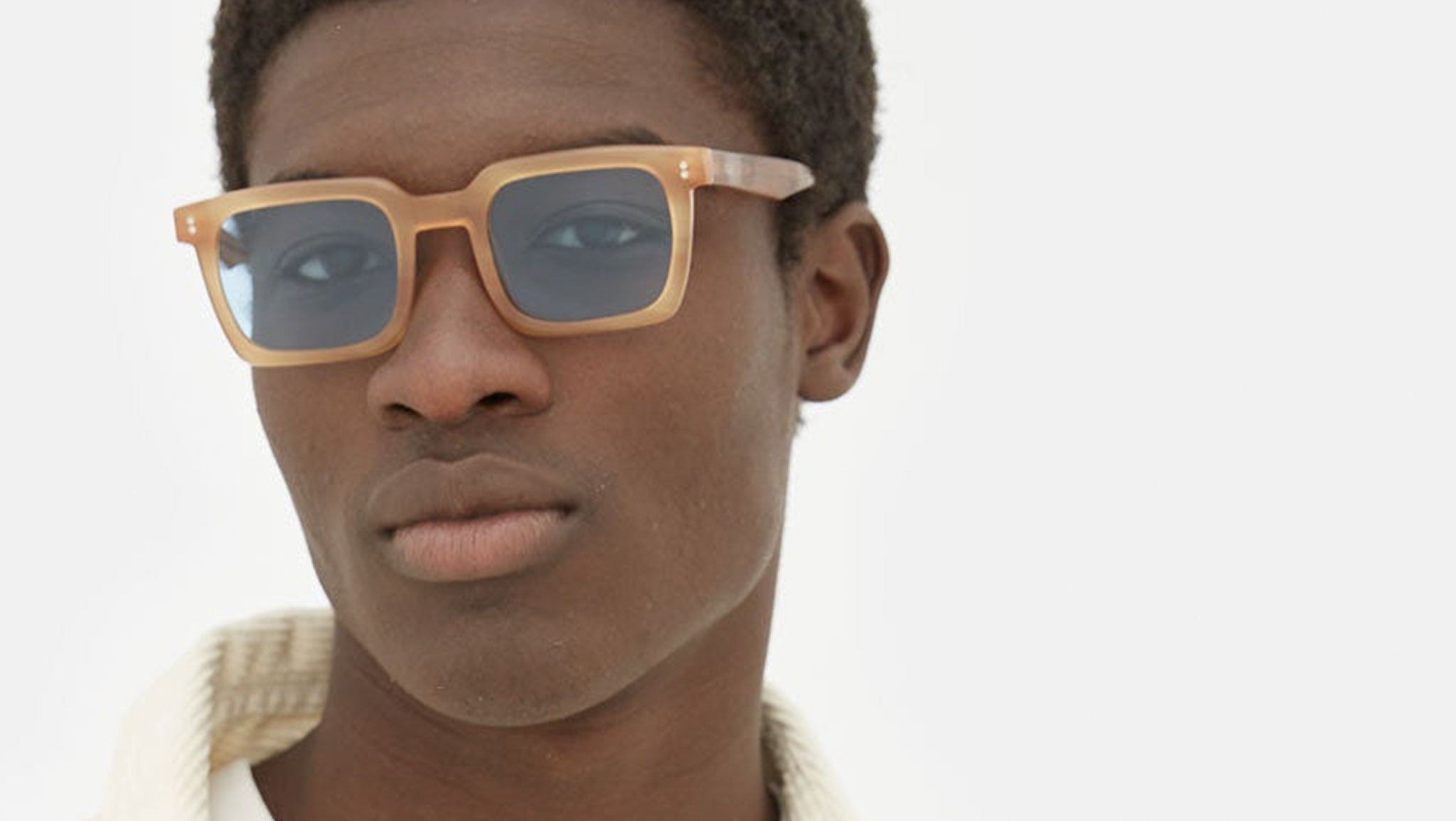 Secolo is an essential geometric silhouette with a distinctive architectural quality, where precise angles of the frame are balanced with its rounded lenses. This is an uncompromising, yet fitting shape for those looking for elegant, squared sunglasses with a unique modernist character. Its apparent simplicity and aesthetic purity conceal carefully crafted details, such as its pointed temple tips and sharp angular detailing on the temples. Secolo comes in a sandy crystal acetate with tinted blue lenses.