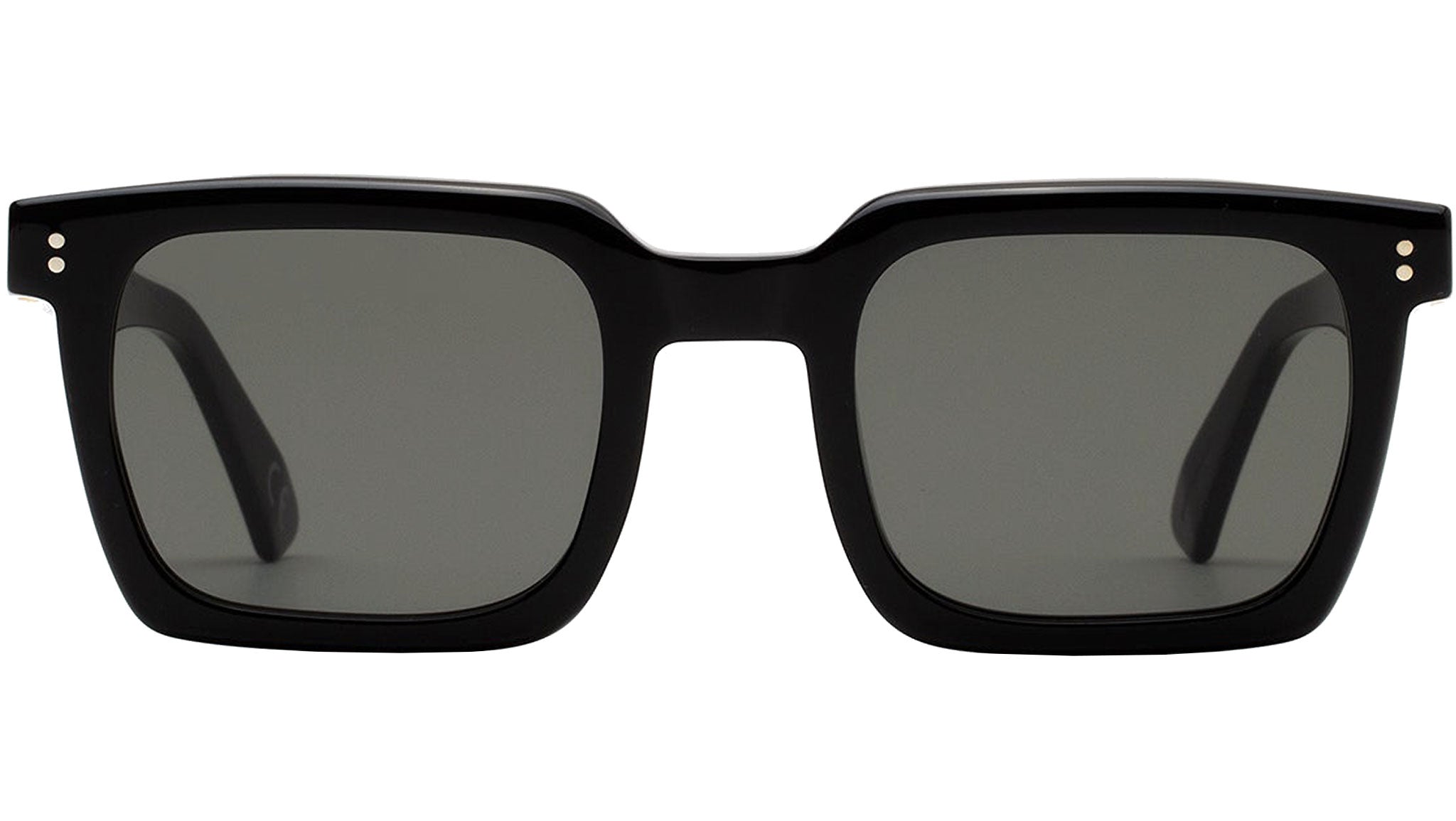 Secolo is an essential geometric silhouette with a distinctive architectural quality, where precise angles of the frame are balanced with its rounded lenses. This is an uncompromising, yet fitting shape for those looking for elegant, squared sunglasses with a unique modernist character. Its apparent simplicity and aesthetic purity conceal carefully crafted details, such as its pointed temple tips and sharp angular detailing on the temples. Secolo comes in a shiny black acetate with matching lenses.