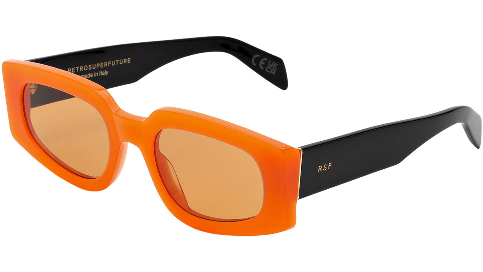 Tetra is a signature RSF frame: a sturdy, oversized silhouette with a distinct street edge. With thick rims and wide oval lenses, Tetra balances timeless classicism with modern, sharp features. Inspired by 1990s references, Tetra captures the perfect blend of understated elegance and raw edginess for an effortless everyday style. This version comes in a vibrant orange acetate, bordeaux lenses and solid black temples. Sizes: Lens Width: 53 mm. Frame Front: Frame Side: 145 mm.