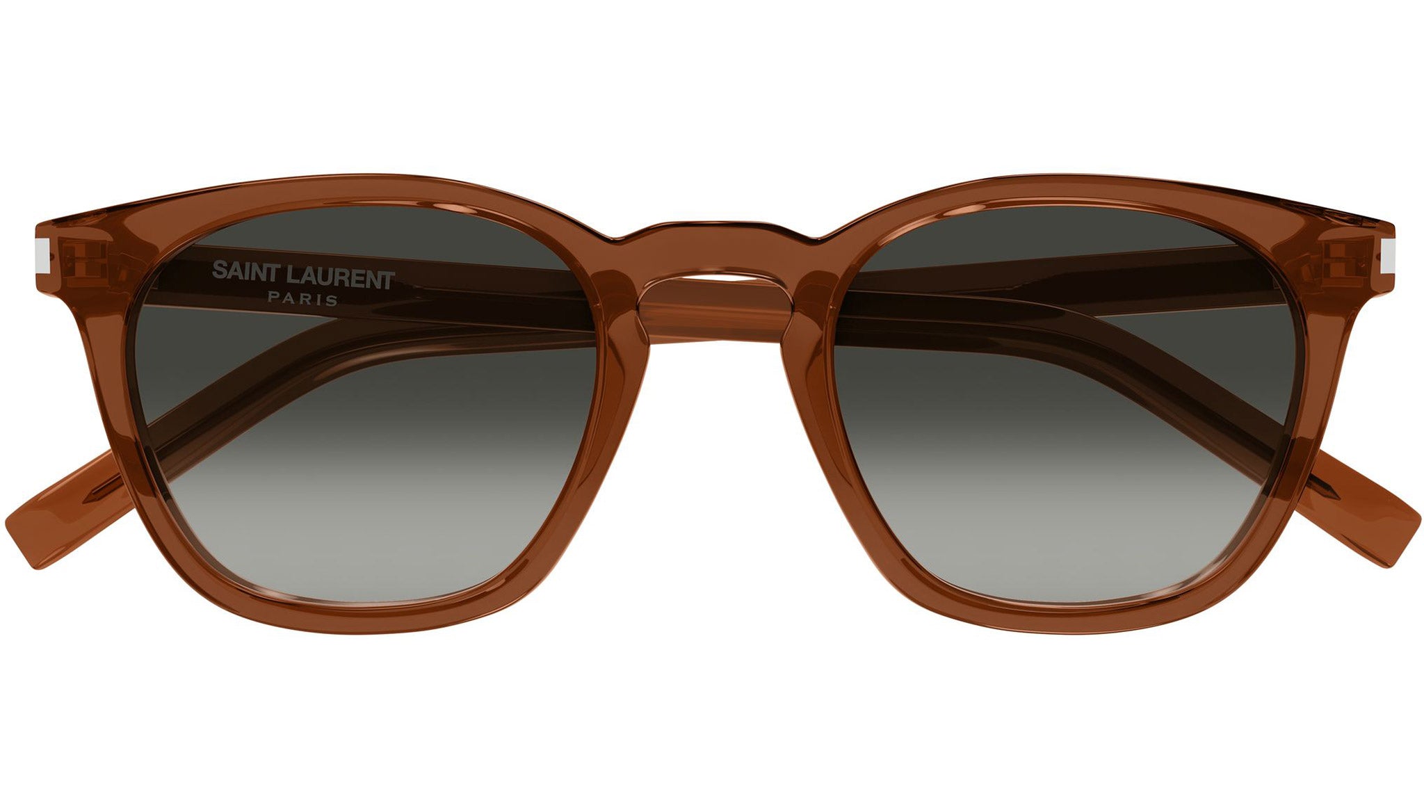 Occhiali da sole Saint Laurent SL 28 051 unisex con montatura rettangolare in acetato marrone trasparente lucido e lenti grigio sfumato. Linea: Corner Angle. Codice modello: SL 28. Codice colore: 051. Made in Italy. Rivenditore autorizzato Saint Laurent online. Gli occhiali vengono consegnati con custodia e accessori originali e sono coperti dalla garanzia ufficiale di 12 mesi del produttore.