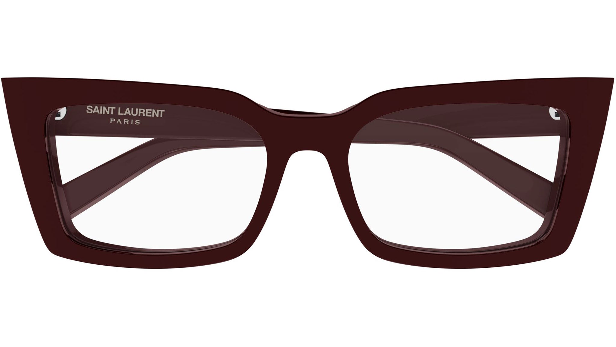 Occhiali da vista Saint Laurent SL 554 005 donna con montatura cat eye in acetato bordeaux tinta unita lucido e lenti demo. Linea: SL Logo. Codice modello: SL 554. Codice colore: 005. Made in Italy. Rivenditore autorizzato Saint Laurent online. Gli occhiali vengono consegnati con custodia e accessori originali e sono coperti dalla garanzia ufficiale di 12 mesi del produttore.