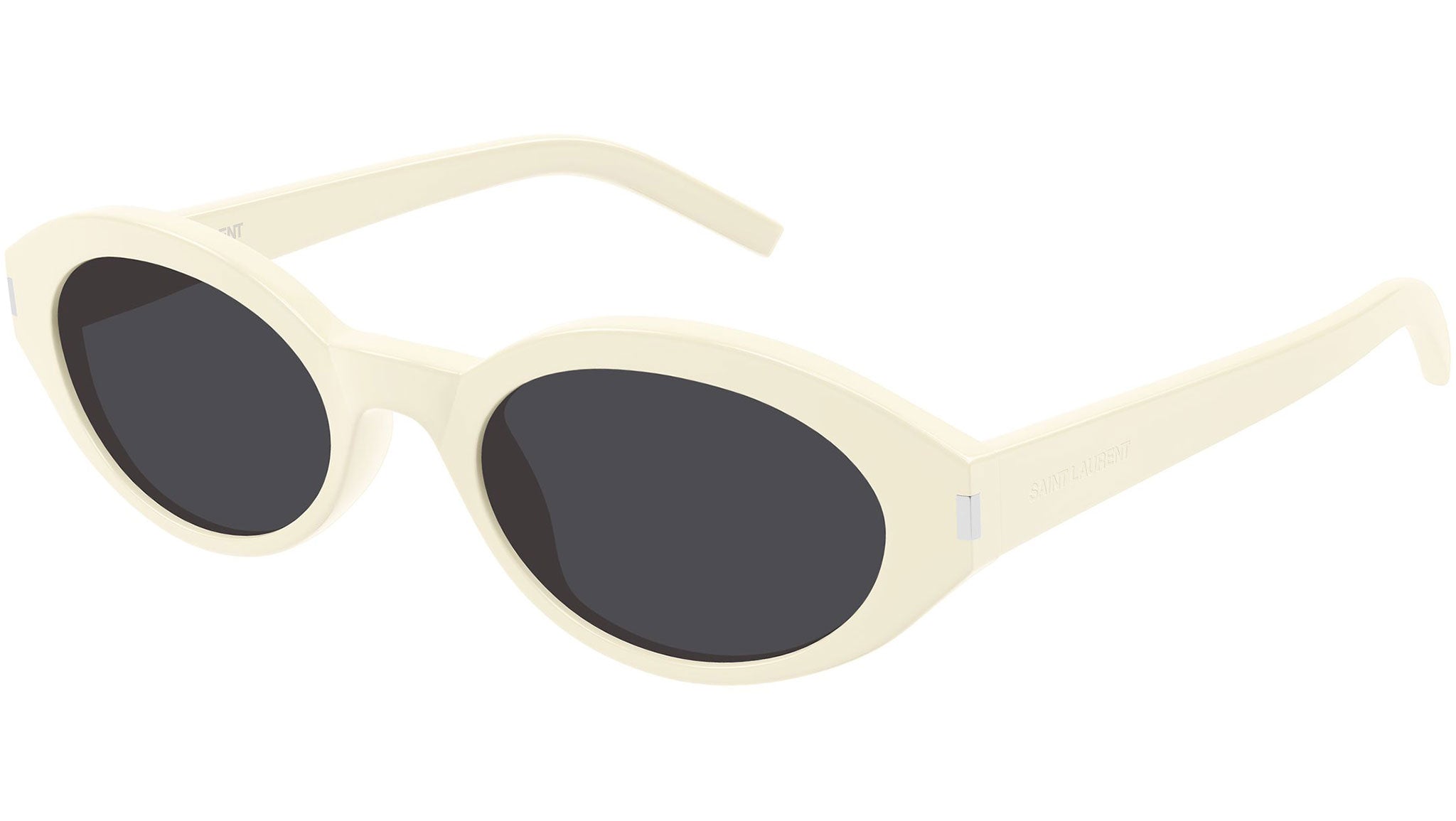 Occhiali da sole Saint Laurent SL 567 005 donna con montatura ovale in acetato riciclato avorio e lenti nero solido con AR black hole. Linea: Corner Angle. Codice modello: SL 567. Codice colore: 005. Made in Italy. Rivenditore autorizzato Saint Laurent online. Gli occhiali vengono consegnati con custodia e accessori originali e sono coperti dalla garanzia ufficiale di 12 mesi del produttore.