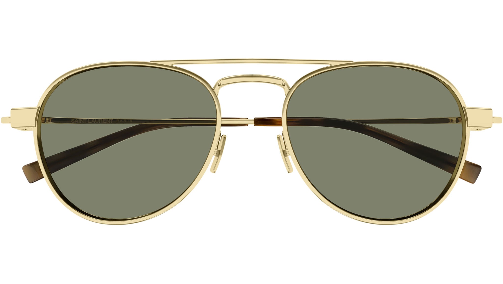 Occhiali da sole Saint Laurent SL 708 003 uomo con montatura ovale in metallo oro e lenti verde tinta unita. Linea: SL Logo. Codice modello: SL 708. Codice colore: 003. Made in Japan. Rivenditore autorizzato Saint Laurent online. Gli occhiali vengono consegnati con custodia e accessori originali e sono coperti dalla garanzia ufficiale di 12 mesi del produttore.