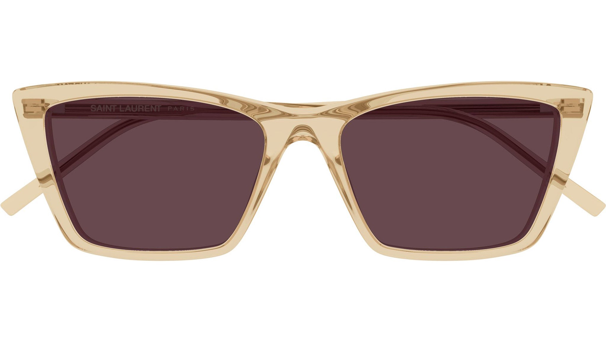 Occhiali da sole Saint Laurent SL 737 MICA THIN 008 donna con montatura rettangolare in acetato riciclato giallo lucido trasparente e lenti viola scuro tinta unita. Linea: SL Logo. Codice modello: SL 737 MICA THIN. Codice colore: 008. Made in Italy. Rivenditore autorizzato Saint Laurent online. Gli occhiali vengono consegnati con custodia e accessori originali e sono coperti dalla garanzia ufficiale di 12 mesi del produttore.