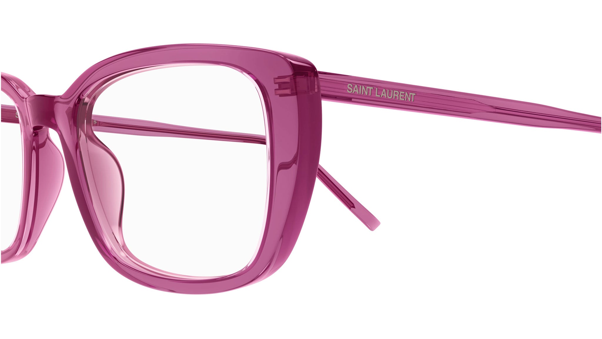 Occhiali da vista Saint Laurent SL 776 donna con montatura rettangolare in acetato riciclato rosa e lenti demo. Linea: SL Logo. Codice modello: SL 776. Codice colore 53 mm: 011. 50 mm: 002. Made in Italy. Rivenditore autorizzato Saint Laurent online. Gli occhiali vengono consegnati con custodia e accessori originali e sono coperti dalla garanzia ufficiale di 12 mesi del produttore.