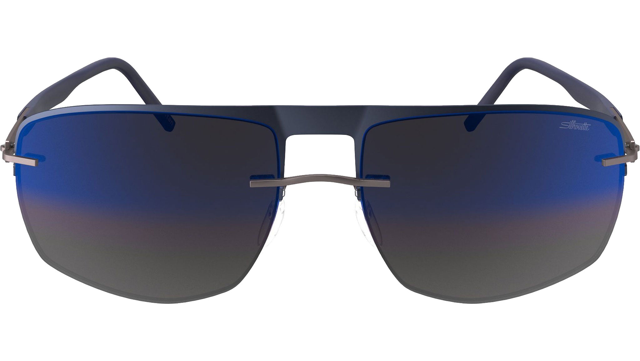 Silhouette Accent Shades 8738 in 4540 frame color featuring blue mirror gradient lenses. At Silhouette, the emphasis is placed on more than just superior quality and innovative design; functionality and protection are also pivotal elements in all their sunglasses. An ideal illustration of this is the patented Silhouette Light Management® technology, which provides unparalleled shielding against detrimental UV rays and blue light. Silhouette's meticulously engineered lens transmittance ranges offer a delightful brightening effect and vibrant, high-contrast color perception. This, along with exceptional anti-glare protection, makes their sunglasses truly outstanding.