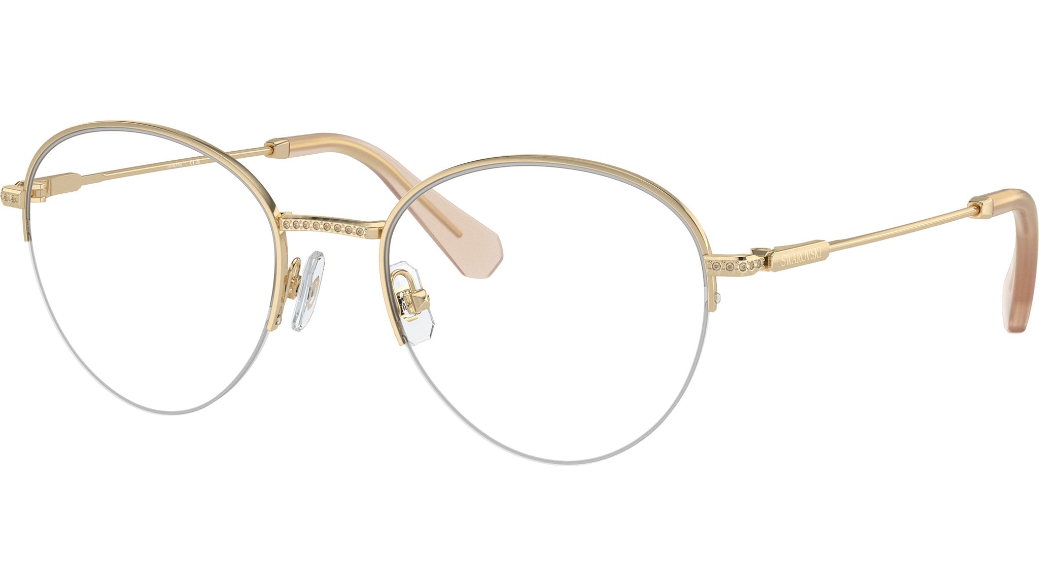 Montatura per occhiali da vista Swarovski donna modello 1004 semi rim in metallo oro pallido con lenti demo base 4. Naselli regolabili. Linea: Science of Elegance. Codice brand: 0SK1004. Codice colore: 4013. Rivenditore autorizzato online Swarovski Eyewear. Ogni prodotto Swarovski viene consegnato con astuccio originale e accessori ed è coperto da garanzia del produttore di 12 mesi.
